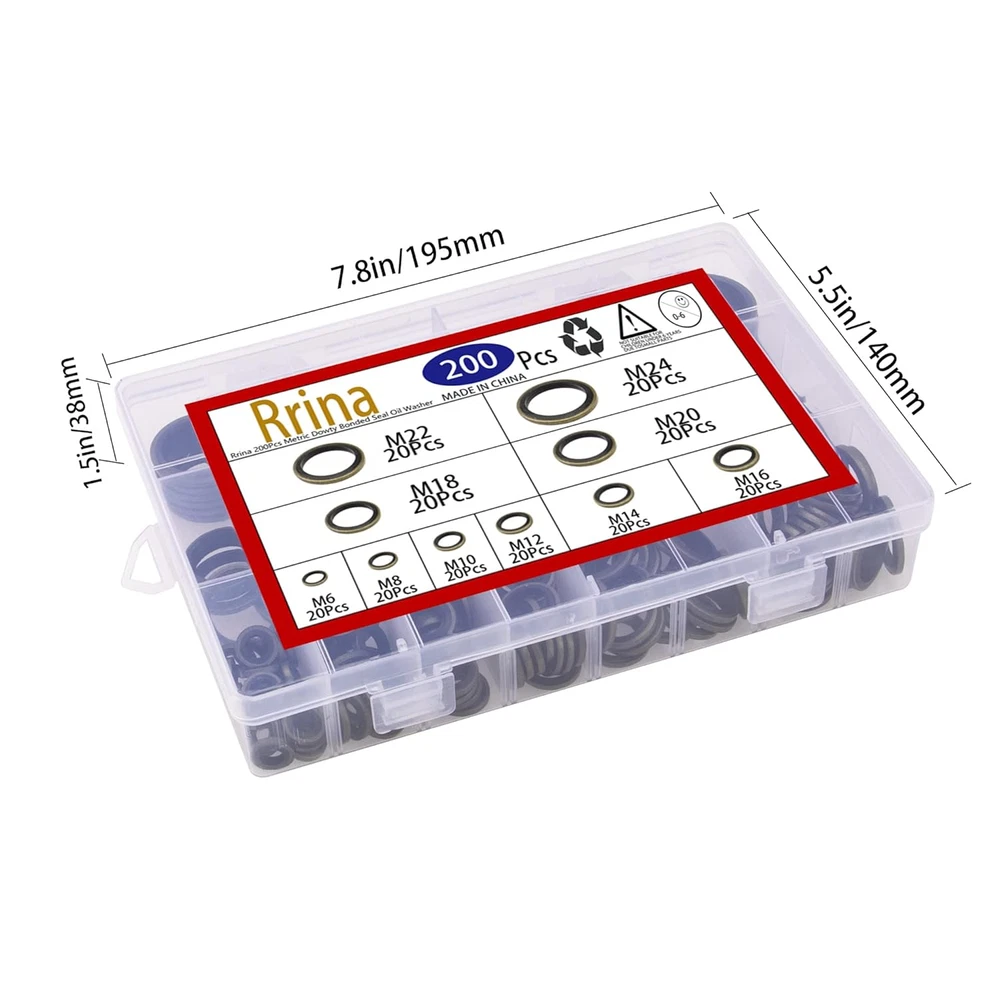 Store New Arrivals Add to Favorite View Feedback Contact 200Pcs Metric Dowty Bonded Seal Oil Washer Assortment Kit, 10 Sizes M6 to M24 Description Item model number WD067 Fastener Size M24 Material Carbon Steel Outside Diameter 24 Millimeters Washer Type Flat Exterior Finish Carbon Steel, Rubber Package Dimensions 8.46 x 6.06 x 1.61 inches; 1.27 Pounds Manufacturer Rrina MATERIAL: Made of high quality carbon steel metal ring and a rubber gasket, not easy to rust, rubber ring uses oil resistant NBR and fluorine rubber.It's service temperature is -25℃~+100℃,working pressure less than 40Mpa. PACKING QUANTITY: 200Pcs washer 10 sizes: M6--20Pcs; M8--20Pcs; M10--20Pcs; M12--20Pcs; M14--20Pcs; M16--20Pcs; M18--20Pcs; M20--20Pcs; M22--20Pcs; M24--20Pcs. SUITABLE FOR: Bonded washers are used extensively for sealing under the heads of bolts in high pressure applications where coppers washers would be unsuitable. They are often used in hydraulic and pneumatic connections that are subject to extreme pressures. PLASTIC HEAT SEAL PACKAGING: Practical and convenient of packing box, All of bonded washers packed in a durable and sturdy box, this box can be use for a storage box. DURABLE DIVIDED STORAGE CASE: All Bonded washers are packed in the box with size label and divider, easy to store and won't mix up. MATERIAL: Made of high quality carbon steel metal ring and a rubber gasket, not easy to rust, rubber ring uses oil resistant NBR and fluorine rubber.It's service temperature is -25℃~+100℃,working pressure less than 40Mpa. SUITABLE FOR: Bonded washers are used extensively for sealing under the heads of bolts in high pressure applications where coppers washers would be unsuitable. They are often used in hydraulic and pneumatic connections that are subject to extreme pressures. PLASTIC HEAT SEAL PACKAGING: Practical and convenient of packing box, All of bonded washers packed in a durable and sturdy box, this box can be use for a storage box. DURABLE DIVIDED STORAGE CASE: All Bonded washers are packed in the box with size label and divider, easy to store and won't mix up. WHAT YOU WILL GET: 200Pcs Washers 10 sizes M6-----------------------------20Pcs; M8-----------------------------20Pcs; M10---------------------------20Pcs; M12---------------------------20Pcs; M14---------------------------20Pcs; M16---------------------------20Pcs; M18---------------------------20Pcs; M20---------------------------20Pcs; M22---------------------------20Pcs; M24---------------------------20Pcs. NOTE: Due to the difference between different monitors, the picture may not reflect the actual color of the item. WARM TIPS: Products contain small parts, please do not let children play, to prevent inadvertent swallowed. CUSTOMERS SERVICE: We will support lifetime garrantee and 100% money back for your problem, in addition, we offer 24H always online service, welcome to come to us if you need help. ABOUT US We offer the best prices around on high quality products. Our E-store includes media such as books, movies, music and games while offering electronics, toys, sporting apparel, clothing, tools, general home, garden items and more. SHIPPING We are always working hard to ensure your package arrives as soon as possible. Please understand that some factors like weather, high postal traffic, and the performance of shipping companies are outside of our control. We offer free shipping to the lower 48 states and ship within 2 business days of payment, usually sooner. We do not accept P.O. Boxes. Please provide a physical address. RETURNS We offer a 30-Day Return Policy on items which you are not completely satisfied with. You have the option for a full-refund or an exchange of the item. No returns are available on items shipped outside of the USA. PAYMENT We accept PayPal. CONTACT US This page content is yet to come Please ad us to your favorite seller and visit again later Thank You CUSTOMER SATISFACTION We try our very best to make sure every customer is completely satisfied. If there's a problem, message us! We're happy to help.