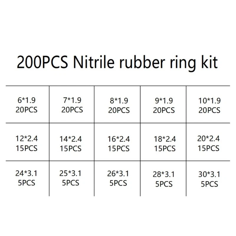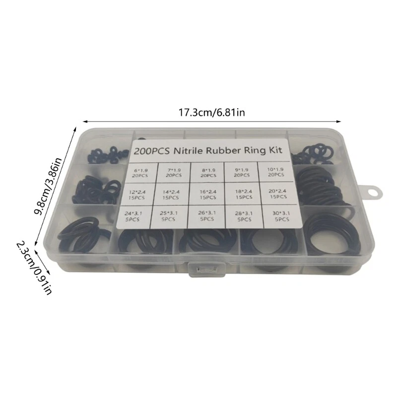 Features: Brand new and high quality Packed in 200pcs rubber o-rings, in 15 commonly used size. The quantity is enough to meet daily needs,have long-terms use. O rings gasket selected from nitrile rubber, oil resistant, heat resistant up to 120℃. The rubber washer seals soft and flexible, easy installation. reduce pressure and protect part and screws,Suitable for most plumbing and general repair needs. These rubber Spacers gasket washers widely used on home and workplace,great for general plumbers, car, door, window, garages O seals rings set store in plastic box, which size. It can save your effort in tidying up and choosing right size.Convenient for storage and picking. Specifications: Material:Butyronitrile Rubber Package Includes: 20Pcs 6x1.9mm O-Rings Gasket 20Pcs 7x1.9mm O-Rings Gasket 20Pcs 8x1.9mm O-Rings Gasket 20Pcs 9x1.9mm O-Rings Gasket 20Pcs 10x1.9mm O-Rings Gasket 15Pcs 12x2.4mm O-Rings Gasket 15Pcs 14x2.4mm O-Rings Gasket 15Pcs 16x2.4mm O-Rings Gasket 15Pcs 18x2.4mm O-Rings Gasket 15Pcs 20x2.4mm O-Rings Gasket 5Pcs 24x3.1mm O-Rings Gasket 5Pcs 25x3.1mm O-Rings Gasket 5Pcs 26x3.1mm O-Rings Gasket 5Pcs 28x3.1mm O-Rings Gasket 5Pcs 30x3.1mm O-Rings Gasket note: 1.Please allow 1-2cm errors due to manual measurement, make sure that you not mind before order. 2.Due to the differences between different monitors, the picture may not reflect the actual of the item.
