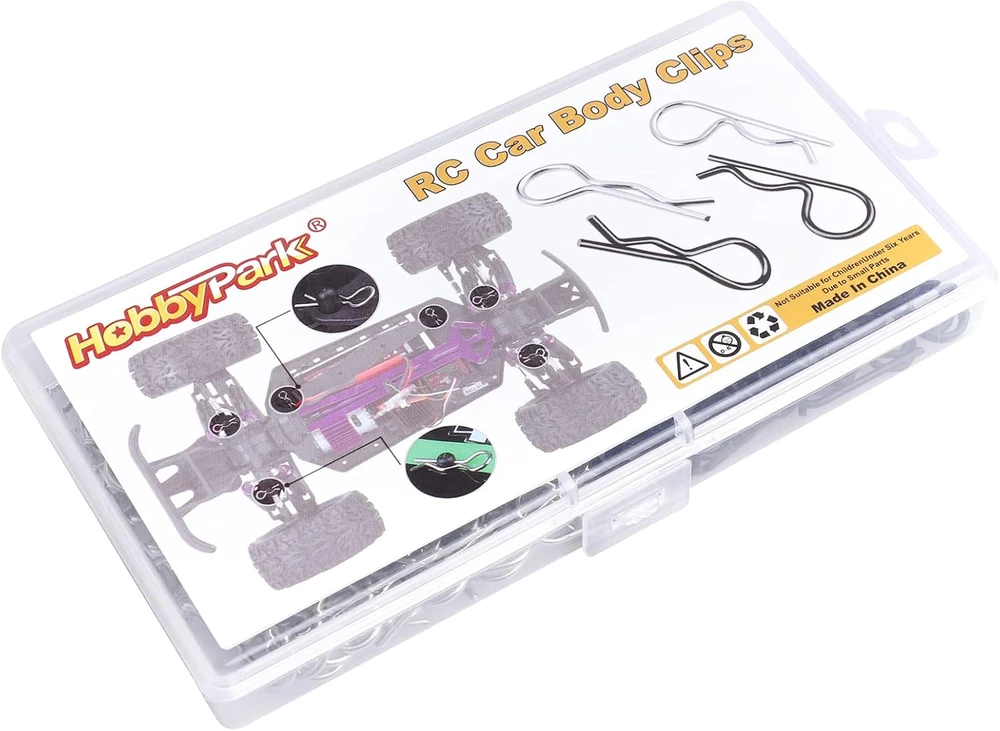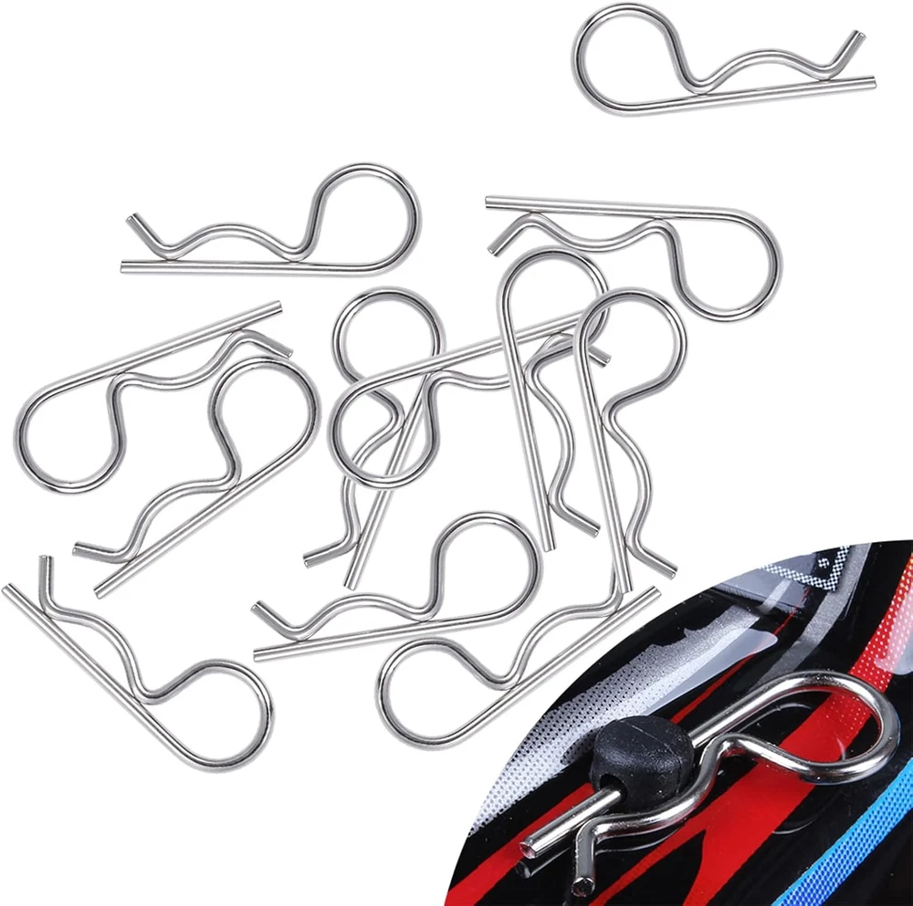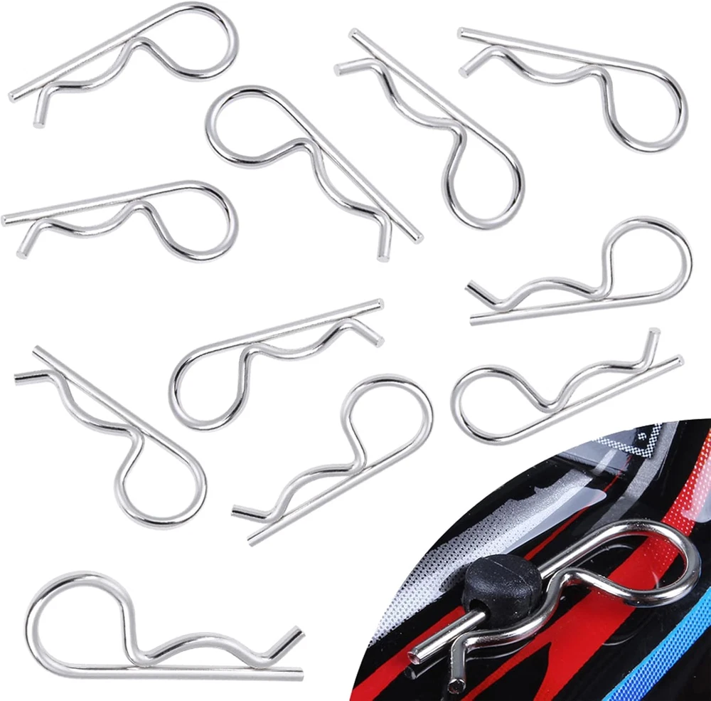 ✔Great Value: 200 pieces universal RC body clips, including 100pcs silver R clips and 100pcs black R clip pins, Packed in Transparent Box. ✔Durable material: these universal R clips are made of stainless steel, long lasting and durable,will not be corroded easily, the color is steady. Bend End Design, allowing them to be removed or installed easier. Securely fastened bodies to mounting posts. ✔Size infos: Rod diameter:Approx 0.055 inch /1.4 mm; Total length:Approx 1.04 inch / 26.5 mm; Ring diameter: Approx 0.39 inch / 10mm. Check size before buying. ✔Suitable for 1/10 Scale Traxxas TRX4/Slash/Rustler/Maxx/E Revo/Stampede/Hoss, etc Arrma Axial Losi & All 1/8 Scale RC Vehicles Models Note: The color of the item may vary slightly due to photography and your own computer /Phone Please allow some little manual measurement error. Customer Satisfaction Guarantee If you are not completely satisfied with our products, please do not hesitate to contact us to request a refund or exchange! Note: Check your specific model's manual for compatibility,or Contact us.