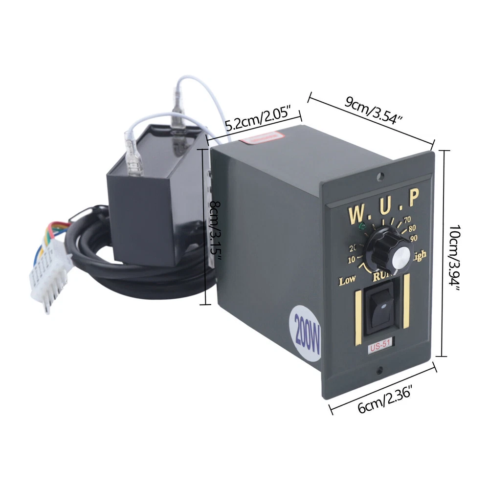200W 110V AC Gear Motor Electric Variable with Speed Controller Single-phase 20K 110V Knob Motor Speed Controller Variable Adjustable Speed Regulator Specification Voltage: 110V Power: 200W Output Speed: 68 r/min Rated Torque: 24.1 N.m Gear Reduction Ratio: 20K Motor Gross Weight: 7kg/15.4lbs Motor Net Weight: 6.8kg/14.99lbs Motor Package Size: 32*12.5*12.5cm/12.6*4.9*4.9inch Motor Product Size: 8.4*10.4*17.2cm/3.3*4*6.77inch Package Size (Reduction Gearbox): 18.5*10.5*7cm/7.3*4.1*2.8inch Reduction Gearbox Product Size (L*W*H): 8.4*10.4*6.6cm/3.3*4*2.6inch Shaft Length (Reduction Gearbox): 3.6cm/1.4inch Shaft Thickness (Reduction Gearbox): 1.5cm/0.6inch Key Width (Reduction Gearbox): 5mm/0.2inch Shaft Eccentricity (Reduction Gearbox): 2cm/0.8inch Aperture (Reduction Gearbox): 8mm/0.3inch Disc Diameter (Reduction Gearbox): 3.9cm/1.5inch Disc Height (Reduction Gearbox): 9mm/0.35inch Diagonal Mounting Hole Distance (Reduction Gearbox): 12cm/4.7inch Hole Applicable Screw (Governor Box): M8 Speed Governor Gross Weight: 0.35kg/0.77lb Speed Governor Net Weight: 0.3kg/0.66lb Speed Governor Package Size: 18.5*10.5*7cm/7.3*4.1*2.8inch Speed Governor Product Size: 8*5.2*9cm/3.1*2*3.5inch Panel Size (Speed Governor): 10*6cm/4*2.4inch Description The stator and rotor of the gear motor adopt pure copper coils, which are more durable and make the motor's power output more smooth and stable. The gear set adopts full ball bearings and high precision alloy steel gears to effectively enhance the rotational torque of the motor and improve working efficiency. It is suitable for the packaging industry, printing industry, textile machinery, food, construction, CNC equipment, sports equipment, machine tool industry, automobile, robot industry, production plant, elevator machinery, barbecue industry, etc. Key Features More Smooth: The stator and rotor adopt pure copper coils, which are more durable and make the motor's power output more smooth. Forward and Reverse Rotatable: This motor supports forward and reverses rotation that can be achieved by changing the position of the governor wiring , so you can adjust the rotational direction according to the specific situation, which can meet your various needs. More Wear-resistant Gears: The one-piece gearbox undergoes a heat treatment process to improve the wear resistance of the gears, making the gears be used for a long period. Lower Temperature and Noise: Both ends of the rotor of the motor are equipped with ball bearings, so there is less friction, a lower temperature generated by friction, and lower noise generated. Time-saving and Effort-saving: The gearbox has a built-in solid lubricant, so it can be used for about ten years before the lubricant in the gearbox needs to be replaced, which is more time-saving and effort-saving. Large Rotational Torque: The gear set adopts full ball bearings and high precision alloy steel gears to effectively enhance the rotational torque of the motor and improve working efficiency. Fast Rotation: The bearings of the motor with a fast speed make the motor work better in a shorter period, promoting working efficiency. High-quality Material Gears: The gears of the motors are machined by micro-roll shaving with special alloy tools, so the gears have high strength, high hardness, and great durability. Stable Running: The finely manufactured parts make the top cover and bottom cover tightly and firmly combined so that the rotor can run stably. Details Fan Heat Sink and Heat Sinkhole: The built-in fan heat sink and heat sinkhole at the end of the motor make the exhaust from the end of the motor smooth to achieve effective heat dissipation and extend the life of the motor. Speed Control Knob: You can freely adjust any speed because of the infinitely adjustable speed according to the different situations by turning the speed control knob on the speed governor from 0 to one hundred percent of the speed . The faster/slower you turn the knob to the right/left, the faster/slower the speed. Application It is suitable for the packaging industry, printing industry, textile machinery, food, construction, CNC equipment, sports equipment, machine tool industry, automobile, robot industry, production plant, elevator machinery, barbecue industry, etc. Installation 1. This product needs basic assembly. Professional would be highly recommended. 2. If you have any questions, please feel free to contact us, we are willing to answer your questions. Package Included 1 * Gear Motor 1 * Speed Governor Notes This motor will reach a temperature rise of about 65 degrees Celsius during operation, which is normal and does not affect the use. Please make sure you do not mind before ordering . Please allow the slight color difference caused by the shooting light and 1-3 cm error due to manual measurement, and make sure you do not mind before ordering. Note:Based on the industrial standard, to meet different needs of customers, our motor does not include the power cord, you need to purchase the power cord to connect. Payment Delivery details Terms of sales About us Contact us Payment We accept ebay payment 。 Fees such as import duties, taxes are not included in the item price or shipping costs. These charges are the buyer's responsibility. Delivery details Shipping: 2-9 working days to: USA Terms of sales We maintain high standards of excellence and strive for hundred percent customer satisfaction. Feedback is very important to us. We hope that you contact us immediately before you give neutral or negative feedback, so that we can address your concerns. It is impossible to address issues if we do not know about them! About us Your satis faction is our ultimate goal. We work hard to earn your trust and future business. Our certified technicians have tested each item before shipping. The unit comes with 1 year limited warranty on all manufacturing defects. a) If you receive a defective item, you may return it or ask for a discount. Please contact us within 14 days