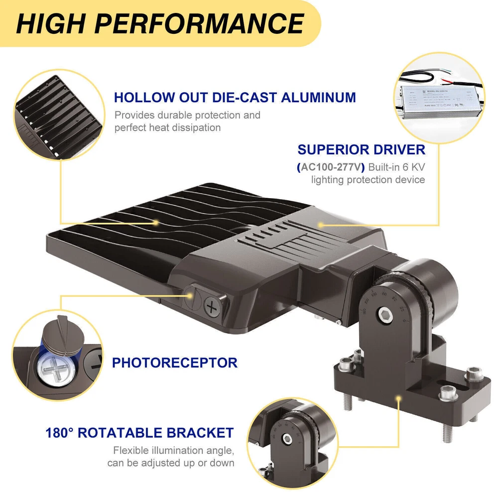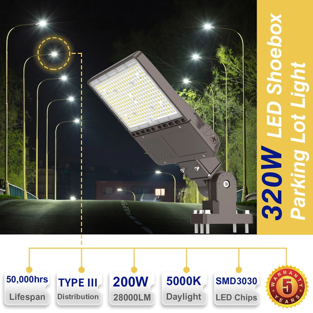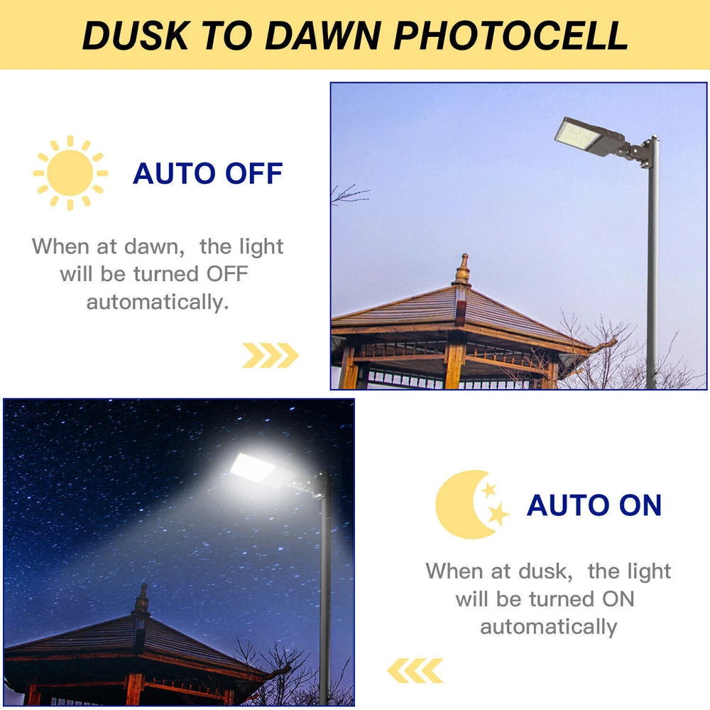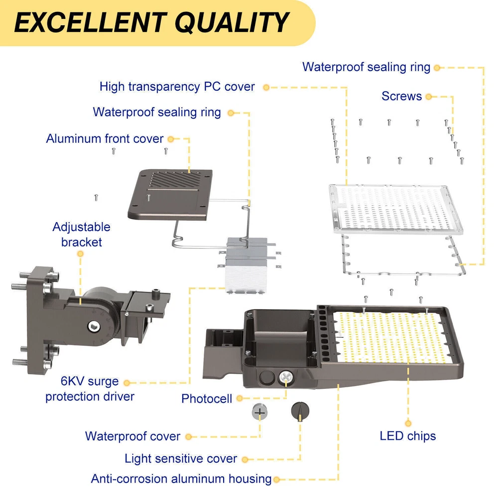 Product Description 200W LED Parking Lot Light Commercial Shoebox Street Area Lighting Dusk to Dawn About this item: 【 Super Bright & Energy Saving 】 - AC100~277V universal voltage. The 200W led parking lot light with photocell provides 28000 Lumens at 5000K daylight white. Use SMD3030 LED chips with Light efficiency of 140 lm/w, Ideal to replace traditional 800w metal halide, with energy savings of up to 85% over our product's lifespan. 【 Dusk to Dawn Photocell Included 】 - The LED shoebox light fixture with a built-in photocell sensor can turn on automatically at dusk and off at dawn, with no need to manually switch, saving your time, effort and bills. Can be removed if not needed. 【 High Performance 】 - Die casting aluminum material provides good heat dissipation, and durable engineering PC lens provides symmetrical distribution. Rated over 50,000 hours of use. IP65 waterproof and 6K high voltage surge protection for drying, wet environment, snowstorms, and harsh weather conditions. 【 Easy Flexible Installation 】 - With an adjustable arm mount, the slip mount pole-mounted led parking light fixture can be angled up or down from –90~+90 degrees. ( Note: The mounting bolts are 0.374 inches/9.5 mm suitable for 3/8 inches Allen/hex wrench). Ideal for the basketball court, tennis court, stadium, parking lot, roadways, and general illumination of large areas. 【 5 YEAR WARRANTY 】 - UL/cUL/CE/DLC certified for better quality, and safety. The LED parking lot light is offered 5 years warranty against any defect in materials and workmanship, covering most damage and shipping costs for replacements. Contact us for any quality issues. Specifications: Power: 200Watt Input Voltage: 100~277 VAC Dusk to Dawn Mount Type: Arm Mount for round or square pole Light Distribution: Type III Adjustable Degree: 180° Power Efficiency: > 0.9 LED Color Temperature: 5000K LED Lifetime: >50,000 Hrs Up to 85% Power Saving Material : Die-cast aluminum Housing IP65 Waterproof and 6K High Voltage Surge Protection Recommeded Installation Height Widly Application Item Dimension Offering 5 years product service Excellent Heat Dissipation The strong and durability aluminum heat sink fin structure bring a favourable cooling system SMD3030 LED Chips The LED chips offer a super bright lighting of 30,000 lumen and 150 lm/w efficacy. About Us Payment Shipping Terms Returns Contact Us 1. 10 Years LED Light Manufacturer 2. Certified Safety LED Light Products 3. US Warehouse Fast & Convenient Delivery 30,000 sq.ft production area &100 employees professional team. UL,cUL,cETL,ETL,DLC approved products standard produce by certified request. 6 separately production line strictly control quality & speed production Professional Aging test machine&SMT Machine&IES test system&Reflow oven 1. We only accept payment by PayPal . Your ebay address must match your paypal address. PO BOX can not delivered. 2. Please make payment within 7 days. If you don't need it, please inform us to cancel it, for eBay will open UNPAID dispute automatically in eighth day. 3. Paypal allows you to complete your purchase quickly and securely. It offers a variety of payment options including all the major card carriers. ★★★ ★ ★ USA Warehouse! 2-5days Fast shipping! 1. We will ONLY ship item to eBay physical Paypal address. Your eBay address must match Paypal address. 2. We ship daily Monday - Friday . All orders will be shipped within one working day after payment. 3. Tracking number will be upload on ebay within 24 hours after shipment. 4. Shipping Time: 2-5 working days for US buyers. ★ ★ ★ All of our products are shipped from our 3 different warehouses in the US.(KY/OH/TX) 1. Please kindly CONTACT US via eBay message if there is any problem, instead of Open Case or Return Requests, We will always try our best to solve the problem for you. 2. We provide a 30 days satisfaction or return guarantee for exchange or refund. 3. The package must be in its original packaging and include all of the original accessories or items that came with it when returning an item. The item and package should be in original and perfect condition. 1. Sellers pay return shipping costs. Sellers pay for return, replacement or exchange shipping if there's a problem with the item. For example, if the item a. Doesn't match listing description b. Damaged or defective when received c. Missing spare parts d. Counterfeit or imitation goods 2. Buyers need to pay return shipping costs. If the buyer changes mind about a purchase and wants to return an item, there may need to pay return shipping costs. For example a. Chose the wrong size or feel that the product is not suitable for buyers himself b. No need this product after received c. Find a more suitable price elsewhere than choose a return. 1.Office Time: 9:30 - 18:30, Monday - Saturday (UTC+8) 2.Please contact us with eBay Messa ge . 3.We will respond you within 24 hours on business day. Your feedback is very important to us, please leave us a Positive Feedback with all 5-star for the Detailed Selling Rating when you received the item. If there is some problem about the product, please take communication with us before leaving neutral/negative feedback or opening ebay/paypal case, we will do our best to resolve your problem. We try our best to reply to your emails as soon as possible, however, due to high volume of daily incoming emails and time zone difference; we may not be able to reply your emails immediately. Please allow 24 business hours for us to response. About Us 1. 10 Years LED Light Manufacturer 2. Certified Safety LED Light Products 3. US Warehouse Fast & Convenient Delivery 30,000 sq.ft production area &100 employees professional team. UL,cUL,cETL,ETL,DLC approved products standard produce by certified request. 6 separately production line strictly control quality & speed production Professional Aging test machine&SMT Machine&IES test system&Reflow oven Payment 1. We only accept payment by P