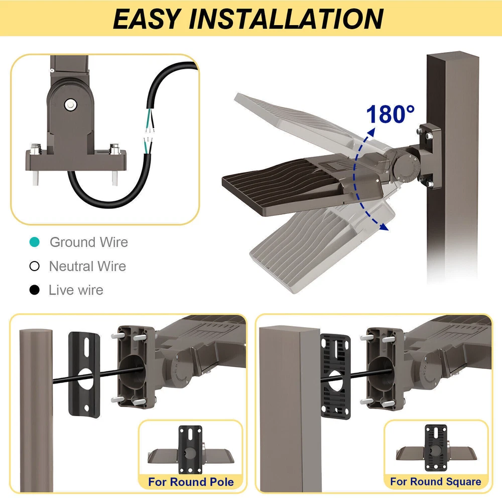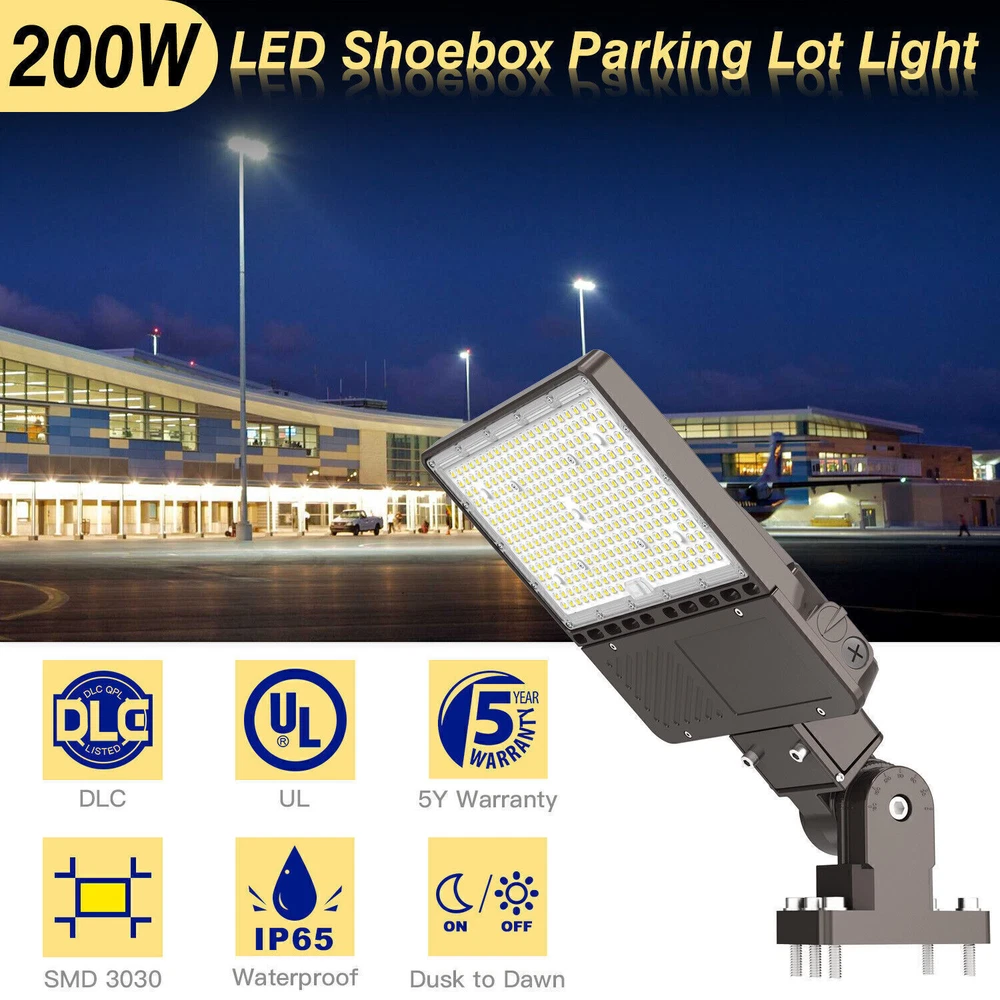 Product Description 200W LED Parking Lot Light Dusk To Dawn Commercial Outdoor Shoebox Street Lights About this item: 【 Super Bright & Energy Saving 】 - AC100~277V universal voltage. The 200W led parking lot light with photocell provides 28000 Lumens at 5000K daylight white. Use SMD3030 LED chips with Light efficiency of 140 lm/w, Ideal to replace traditional 800w metal halide, with energy savings of up to 85% over our product's lifespan. 【 Dusk to Dawn Photocell Included 】 - The LED shoebox light fixture with a built-in photocell sensor can turn on automatically at dusk and off at dawn, with no need to manually switch, saving your time, effort and bills. Can be removed if not needed. 【 High Performance 】 - Die casting aluminum material provides good heat dissipation, and durable engineering PC lens provides symmetrical distribution. Rated over 50,000 hours of use. IP65 waterproof and 6K high voltage surge protection for drying, wet environment, snowstorms, and harsh weather conditions. 【 Easy Flexible Installation 】 - With an adjustable arm mount, the slip mount pole-mounted led parking light fixture can be angled up or down from –90~+90 degrees. ( Note: The mounting bolts are 0.374 inches/9.5 mm suitable for 3/8 inches Allen/hex wrench). Ideal for the basketball court, tennis court, stadium, parking lot, roadways, and general illumination of large areas. 【 5 YEAR WARRANTY 】 - UL/cUL/CE/DLC certified for better quality, and safety. The LED parking lot light is offered 5 years warranty against any defect in materials and workmanship, covering most damage and shipping costs for replacements. Contact us for any quality issues. Specifications: Power: 200Watt Input Voltage: 100~277 VAC Dusk to Dawn Mount Type: Arm Mount for round or square pole Light Distribution: Type III Adjustable Degree: 180° Power Efficiency: > 0.9 LED Color Temperature: 5000K LED Lifetime: >50,000 Hrs Up to 85% Power Saving Material : Die-cast aluminum Housing IP65 Waterproof and 6K High Voltage Surge Protection Recommeded Installation Height Widly Application Item Dimension Offering 5 years product service Excellent Heat Dissipation The strong and durability aluminum heat sink fin structure bring a favourable cooling system SMD3030 LED Chips The LED chips offer a super bright lighting of 30,000 lumen and 150 lm/w efficacy. About Us Payment Shipping Terms Returns Contact Us 1. 10 Years LED Light Manufacturer 2. Certified Safety LED Light Products 3. US Warehouse Fast & Convenient Delivery 30,000 sq.ft production area &100 employees professional team. UL,cUL,cETL,ETL,DLC approved products standard produce by certified request. 6 separately production line strictly control quality & speed production Professional Aging test machine&SMT Machine&IES test system&Reflow oven 1. We only accept payment by PayPal . Your ebay address must match your paypal address. PO BOX can not delivered. 2. Please make payment within 7 days. If you don't need it, please inform us to cancel it, for eBay will open UNPAID dispute automatically in eighth day. 3. Paypal allows you to complete your purchase quickly and securely. It offers a variety of payment options including all the major card carriers. ★★★ ★ ★ USA Warehouse! 2-5days Fast shipping! 1. We will ONLY ship item to eBay physical Paypal address. Your eBay address must match Paypal address. 2. We ship daily Monday - Friday . All orders will be shipped within one working day after payment. 3. Tracking number will be upload on ebay within 24 hours after shipment. 4. Shipping Time: 2-5 working days for US buyers. ★ ★ ★ All of our products are shipped from our 3 different warehouses in the US.(KY/OH/TX) 1. Please kindly CONTACT US via eBay message if there is any problem, instead of Open Case or Return Requests, We will always try our best to solve the problem for you. 2. We provide a 30 days satisfaction or return guarantee for exchange or refund. 3. The package must be in its original packaging and include all of the original accessories or items that came with it when returning an item. The item and package should be in original and perfect condition. 1. Sellers pay return shipping costs. Sellers pay for return, replacement or exchange shipping if there's a problem with the item. For example, if the item a. Doesn't match listing description b. Damaged or defective when received c. Missing spare parts d. Counterfeit or imitation goods 2. Buyers need to pay return shipping costs. If the buyer changes mind about a purchase and wants to return an item, there may need to pay return shipping costs. For example a. Chose the wrong size or feel that the product is not suitable for buyers himself b. No need this product after received c. Find a more suitable price elsewhere than choose a return. 1.Office Time: 9:30 - 18:30, Monday - Saturday (UTC+8) 2.Please contact us with eBay Messa ge . 3.We will respond you within 24 hours on business day. Your feedback is very important to us, please leave us a Positive Feedback with all 5-star for the Detailed Selling Rating when you received the item. If there is some problem about the product, please take communication with us before leaving neutral/negative feedback or opening ebay/paypal case, we will do our best to resolve your problem. We try our best to reply to your emails as soon as possible, however, due to high volume of daily incoming emails and time zone difference; we may not be able to reply your emails immediately. Please allow 24 business hours for us to response. About Us 1. 10 Years LED Light Manufacturer 2. Certified Safety LED Light Products 3. US Warehouse Fast & Convenient Delivery 30,000 sq.ft production area &100 employees professional team. UL,cUL,cETL,ETL,DLC approved products standard produce by certified request. 6 separately production line strictly control quality & speed production Professional Aging test machine&SMT Machine&IES test system&Reflow oven Payment 1. We only accept payment by 