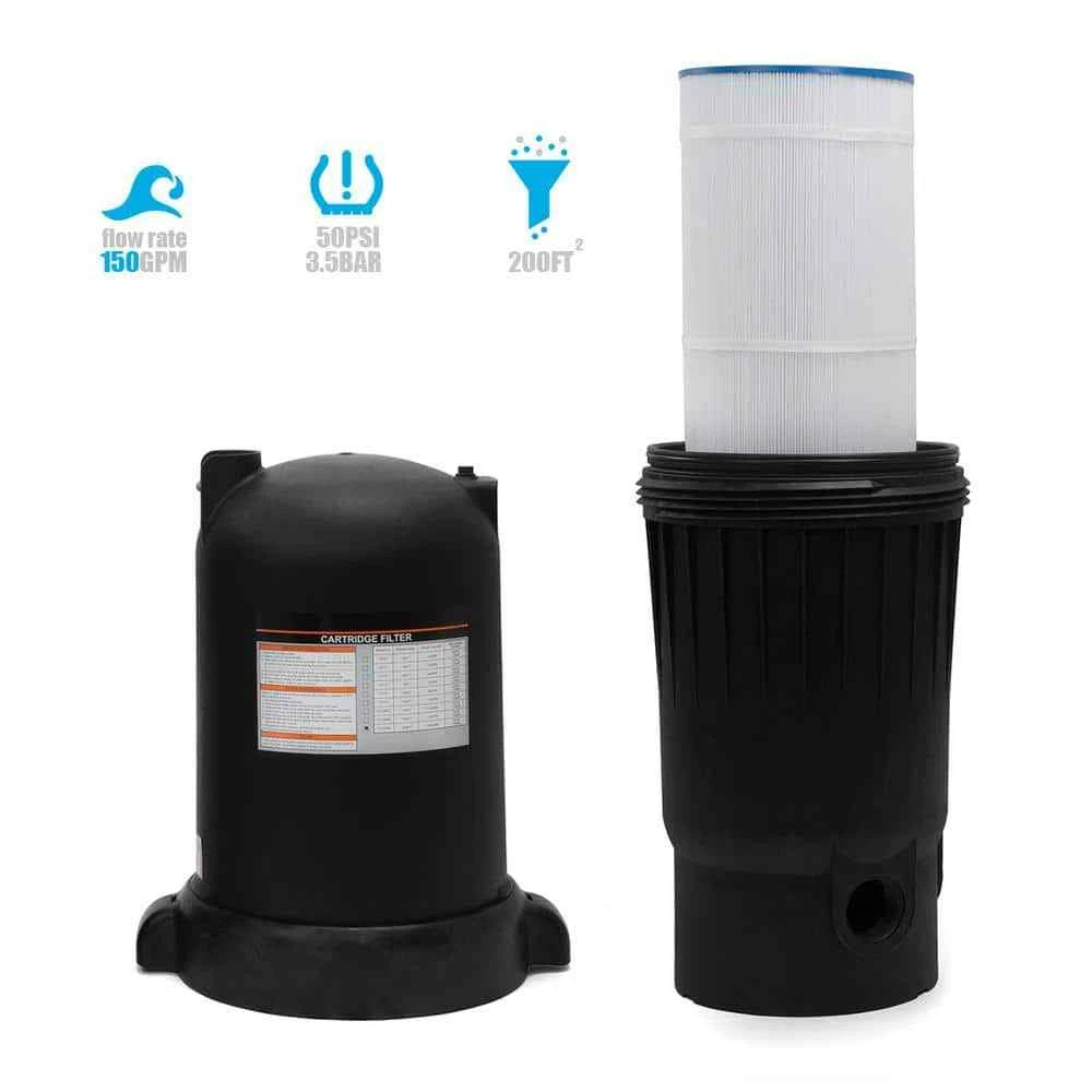 Keep your pools crystal clear and sparkling clean with the XtremepowerUS 200 sq. ft. Pool Filter. The filter tank feature a corrosion-resistant, injection-molded, fiberglass-reinforced, polypropylene filter tank construction for superior strength and reliable fabrication. Combined with 4 non-woven polyester cartridges to provide Gal. filtration and crystal clear quality of water when water or liquids flow through the filtration system. Cleanable cartridge ensures that there is no need for backwashing. Simply remove the cartridge and rinse with a garden hose to reduce water consumption. The extra-large cartridge has an on-boarded top manifold configuration that provides excellent filtration and hydraulic performance to reduce cost of operation. These filters ... 200sq.ft.Cartridge Pool Filter Keep your pools crystal clear and sparkling clean with the XtremepowerUS 200 sq. ft. Pool Filter. The filter tank feature a corrosion-resistant, injection-molded, fiberglass-reinforced, polypropylene filter tank construction for superior strength and reliable fabrication. Combined with 4 non-woven polyester cartridges to provide Gal. filtration and crystal clear quality of water when water or liquids flow through the filtration system. Cleanable cartridge ensures that there is no need for backwashing. Simply remove the cartridge and rinse with a garden hose to reduce water consumption. The extra-large cartridge has an on-boarded top manifold configuration that provides excellent filtration and hydraulic performance to reduce cost of operation. These filters offer the most energy-efficient flow rate and saves up to 2,500 Gal. of water per year by eliminating the need to backwash. Top manifold configuration provides excellent filtration and hydraulic performance for reduced cost of operation Cleanable and removable cartridge ensures energy efficient flow to eliminate the need for backwashing Filter tanks are made from the most durable materials to meet the demands of the toughest applications and environmental conditions High capacity, rapid release manual air relief valve bleeds air with a quick quarter turn of the lever Heavy-duty, tamper-proof, one-piece flange clamp securely fastens tank top and bottom and allows quick access to all internal components Compatible with in-ground pool/spa combination, in-floor cleaning system and salt water filtration systems Application for in-ground pools and spas from up to 200 sq. ft effective filtration area 2 in. full-flow internal piping and plumbing offers less resistance to flow and maximum performance Union coupling connection accepts 2 in. inlet and outlet piping for plumbing versatility (union not included) Maximum turnover of 72,000 Gal. at 8-hours and 90,000 Gal. at 10-hours; flow rate: 150 GPM Features:No Additional Features|Features:No Additional Features|Filtration Area (sq. ft):200|Filtration Area (sq. ft):200|Included:No Additional Items Included|Included:No Additional Items Included|Outdoor Living Product Type:Pool Filters|Outdoor Living Product Type:Pool Filters|Pool Gallons (approx):15000|Pool Gallons (approx):15000|Pool Type:In Ground|Pool Type:In Ground|Product Weight (lb.):25 lb|Product Weight (lb.):25 lb|Manufacturer Warranty:30 Day Limited Manufacturer Warranty for Returns and Exchanges; 60 Day Parts Warranty for Parts Replacements|Manufacturer Warranty:30 Day Limited Manufacturer Warranty for Returns and Exchanges; 60 Day Parts Warranty for Parts Replacements|Product Height (in.):39.5 in|Product Height (in.):39.5 in|Product Width (in.):13 in|Product Width (in.):13 in Item Specifics UPC 840166534410 MPN 75201-H Brand XtremepowerUS Type Cartridge Pool Filters Item weight 25 lb About us Dear buyer, Thank you for visiting my store! Our warehouses are located in many regions around the United States. According to the customer's delivery address. Use USPS/UPS/DHL logistics transportation service. Prioritize the best quality logistics solutions to transport packages. Ensure package delivery time, At the same time. Have any after-sales problems, Feel free to contact us. At your service Payment PayPal is our preferred method of payments it's the quickest, easiest and most secure way to pay for your goods or services online. PayPal offers buyer and seller protection should there be a problem. If you do not have a PayPal account, to get started and buy your first item with us is very easy. Simply click on the 'Buy It Now' button and follow the eBay checkout steps. Select PayPal as the payment method you then will be given the chance to enter your card details in to PayPal's secure checkout in order to pay for your order. Shipping 1. Your purchase is shipped directly to you as soon as we have received your cleared payment. 2. Normally all of parcels would be shipped within 3days(From Monday to Saturday). 3. We will send information on eBay or email if the parcel was delayed due to our holiday. 4. We provide three kinds of shipping for choice. Shipping way depend on delivery address. Returns If an unit is received defective, of course we take it back or replace it. If the unit is received as expected, we must charge for our expenses if you want to send it back. We have to charge for the work of handling, retesting and restocking. DESCRIPTION PAYMENT SHIPPING RETURN POLICY CONTACT US Shop Category Store Home 000HOUSE Home-CN Other Hot Item Wide-Angle Normally Closed Contact Float Switch USD 33.98 1-1/4 in. x 36 in. Well Point USD 55.99 6 in. Well Seal, 1 in. Single Drop USD 39.73 Diaphragm Pump 3.3 GPM 110V 6 ft. Height Water Submersible Pump 45 PSI 0.24 HP 1 USD 55.09 3/4 in. x 14 ft. Fuel Transfer Hose USD 49.66 Picture New List Item 60V MAX 1000 PSI 1.0 GPM Cold Water Cordless Battery Power Cleaner Kit w/(1) FLE USD 380.41 3400 PSI 2.5 GPM Cold Water Gas Pressure Washer w/PressuReady DeWalt 208cc Engin USD 652.91 ONE+ HP 18V Brushless EZClean 600 PSI 0.7 GPM Cordless Cold Water Power Cleaner USD 107.91 40V HP Brushless EZClean 600 PSI 0.7 GPM Cordles