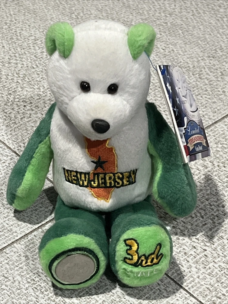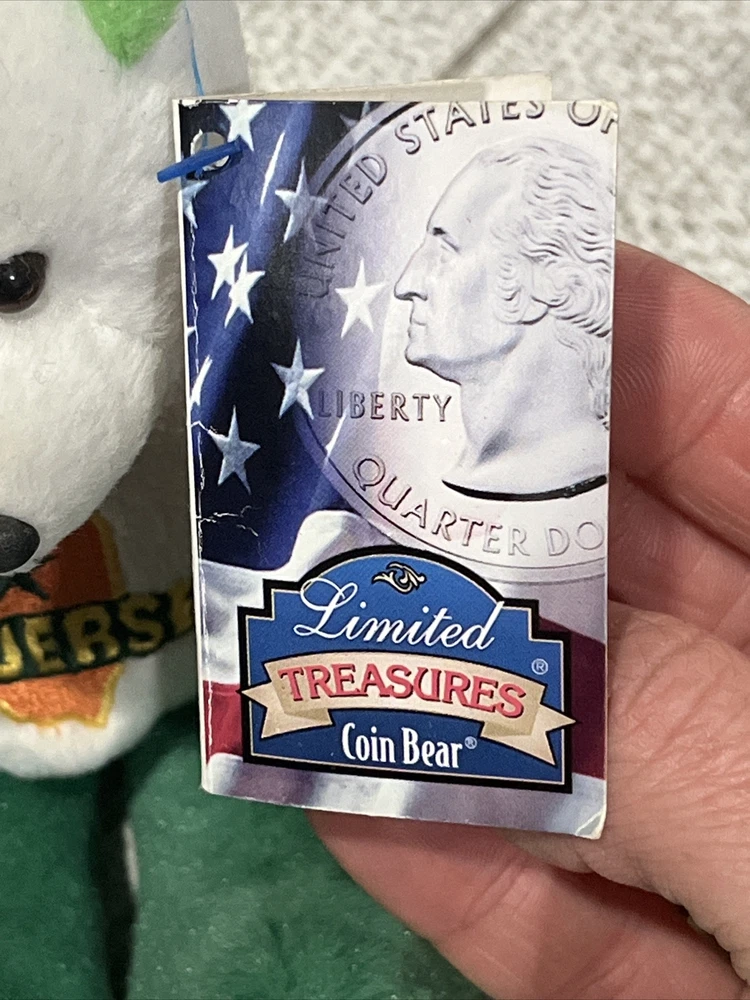 This adorable stuffed animal is the perfect addition to any collection. Celebrating the state of New Jersey, the Limited Treasures bear features a 3rd state coin on its belly. Made in 2010, this bear is a great way to commemorate a special year. The brand, Limited Treasures, is known for their high-quality stuffed animals. Add this one to your collection today!