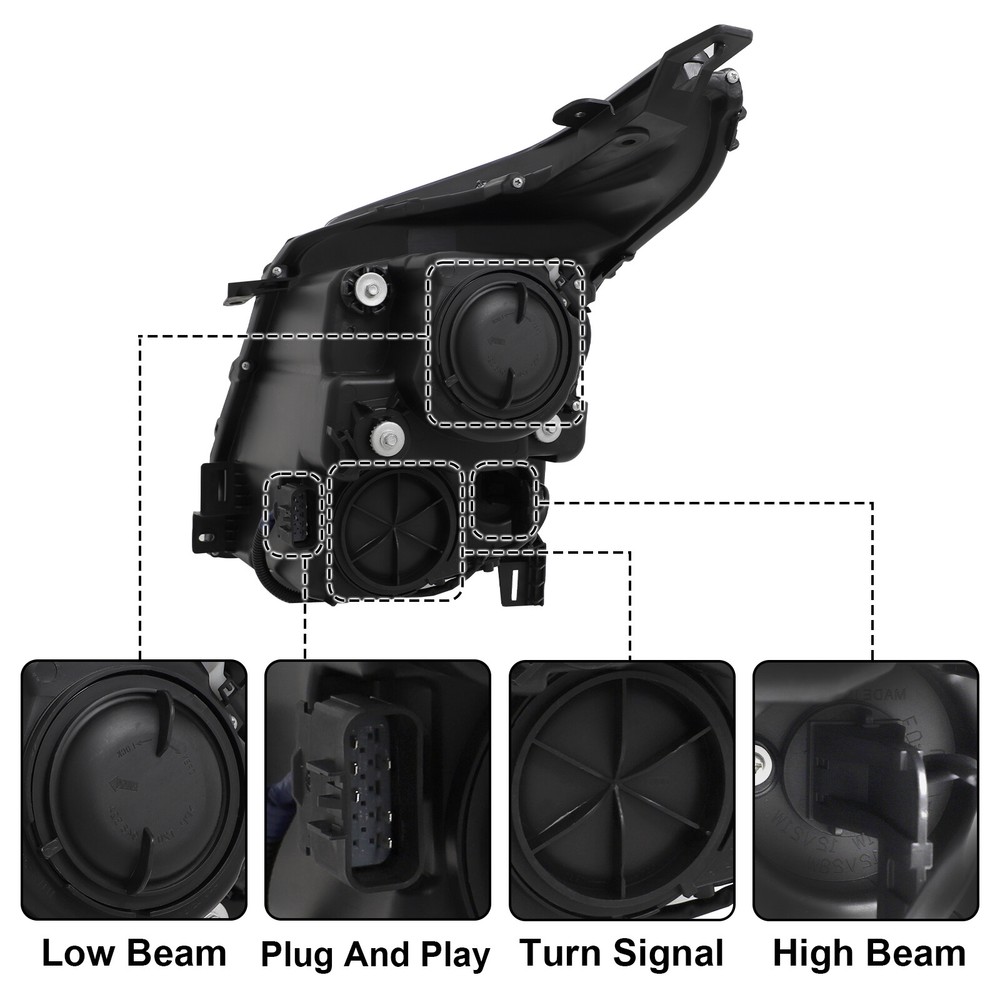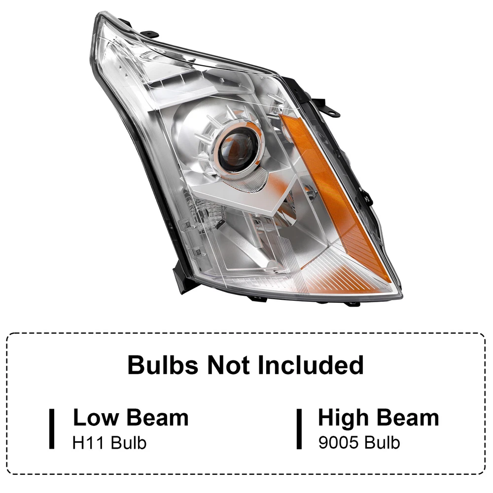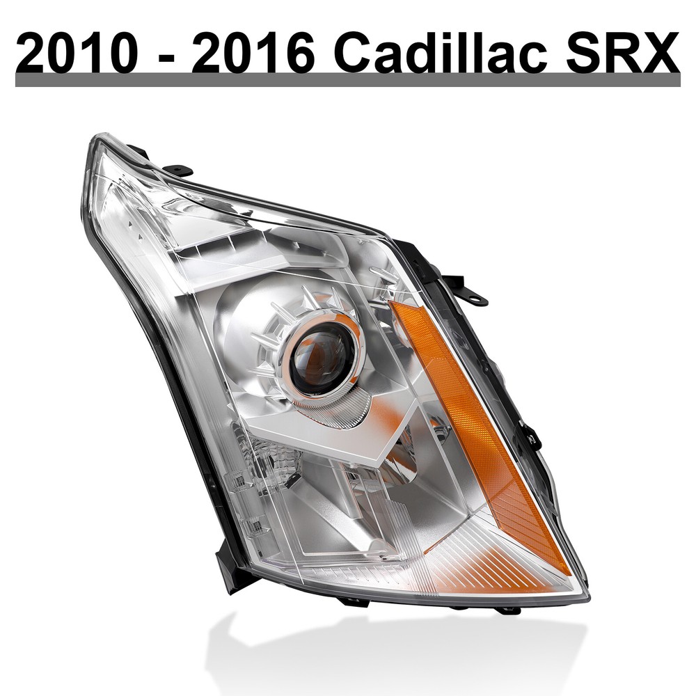 Headlight For 2010-2016 Cadillac SRX Halogen Projector Passenger Right Side Features: 1.Direct replacement for stock assemblies 2.Comes in pairs with driver & passenger sides (right) 3.DOT and SAE compliant with quality meeting or exceeding OEM units 4.All Headlight Lenses come with anti-yellowing/ageing coating 5.3-Months limited warranty 6.Increase your visibility during heavy rain, snow, dense fog and night time driving. Product Description: Material: ABS Plastic+ Polycarbonate Lens Placement on Vehicle: Front, Left, Right Bulbs Type : High Beam : 9005 (Bulbs not included) Low Beam :H11 (Bulbs not included) Housing Material: Plastic Lens Material: Plastic Chrome Housing Amber reflector Compatible with: CADILLAC 2010-2016 SRX 4-Door Sport Utility [ATTENTION: Compatible on Models w/ Factory Halogen Headlights Only] [ATTENTION: Not Compatible on Models on Performance and Premium Headlights] [ATTENTION: Not Compatible on Models w/ Factory HID or LED Headlights] Package includes: 1 headlight Passenger Right Side(Not included bulbs)