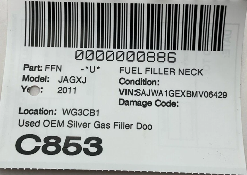 HK Auto Salvage HK Auto Salvage Montebello, CA Business Hours (PST/PDT) Mon - Fri 8am - 5pm Saturday 8am - 2pm Closed Sat & Sun Fuel Filler Neck Year: 11 Model: JAGUAR XJ Side: Type: Used Category: Condition: VIN: SAJWA1GEXBMV06429 Vehicle Stock #: C853 Part Stock #: 0000000886 Vehicle Info: SILVER Additional notes: Used Oem Silver Gas Filler Door Lid Mint Condition See Pictures Interchange: Also fits: Search for more parts from this donor vehicle Search for more parts for JAGUAR XJ Airbag Notification If the item above is an airbag, I certify this airbag is not subject to recall and will be shipped in accordance with hazmat shipping requirements . Payment We accept credit cards through eBay Managed Payments only Sales tax collected by eBay where applicable COD available for orders placed for delivery to local businesses; please contact us prior to purchase to arrange Pay on pickup available for orders placed for local pickup Shipping We ship by FedEx, UPS, and USPS. Most items ship within 24 hours of payment; items paid for on the weekend or holidays ship on the following business day. Any free shipping we offer is for the continental United States only. If you are from Hawaii, Alaska, or a Territory of the United States, please request a shipping total before bidding and we will do our best to keep the cost low. Local delivery and local pickup options are also available. Warranty & Returns 30-day standard warranty on all general parts 90-day standard warranty on engines and transmissions Please verify fitment independently prior to purchase, as the information in the "compatibility" section above is generated by eBay Motors and not from us. If you have questions or concerns about fitment, please contact us prior to purchase. Contact Us If you have any questions regarding an eBay item, please CONTACT US via eBay messaging before you make the purchase. Please verify fitment independently prior to purchase, as the information in the "compatibility" section above is generated by eBay Motors and not from us. If you have questions or concerns about fitment, please contact us prior to purchase. After you have received your product in satisfactory condition, please leave us positive feedback. If there is a problem with your purchase, do not leave neutral or negative feedback: CONTACT US so that we can help you to resolve your issue to your satisfaction. Powered by Checkmate
