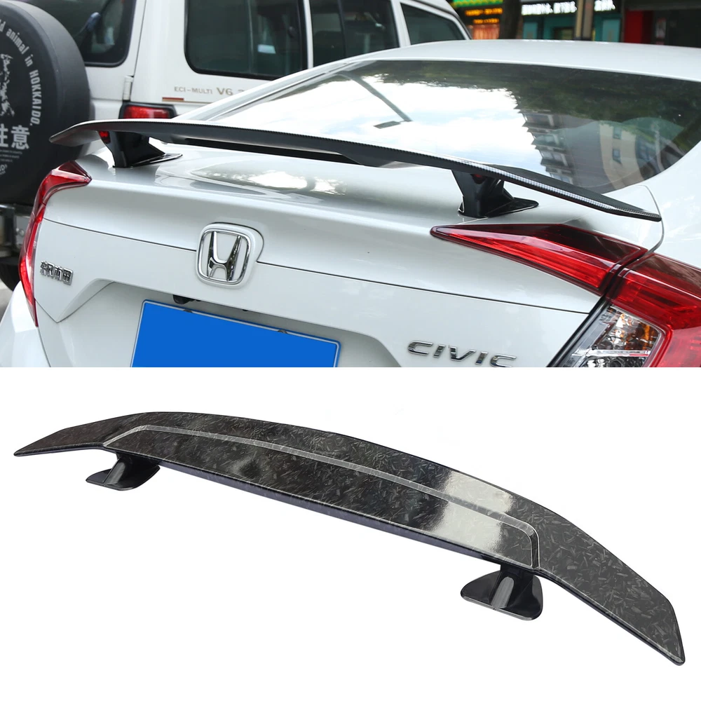 Product Description Spoiler Universal for Racing Sedan Car Carbon Fiber The Rear Trunk Spoiler is one of the simplest mods you can do to the exterior of your car that will give your car that completely different look. Not only are spoilers meant for great looks, they also help with the aero dynamics of the car by lowering drag, or helping to put more downforce on the car making sure that the wheels stay grounded for maximum traction. Fitment: Universal fit for most sedan cars Specifications: Product Name: Sedan Rear Spoiler for Racing Car Material: ABS Size: Length 132cm Color: 3D Carbon Fiber Weight: 2.50kg Features: Made of High Quality Lightweight ABS for Extreme Strength. Latest Design GT Wing Spoiler Completed Kit, Improve Handling And Make Tail More Stable in High Speed. Water Transfer Carbon Fiber for Highest Durability and Appearances. Adjustable Angles for Customizable Usages and Efficiencies, Enhances Aerodynamic. Reduces Drag, Increases Fuel Efficiency, Reinforces Downforce, Traction and Stability. Double-sided adhesive paste, Easy to Install. Package included: 1 x Spoiler On Jan 7, 2025 at 11:50:43 PST, seller added the following information: