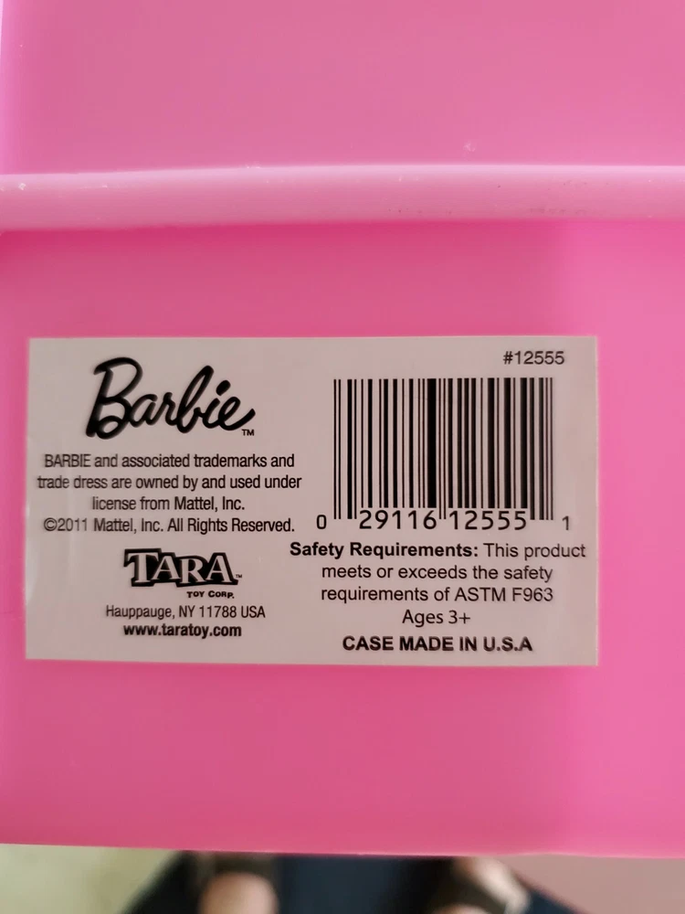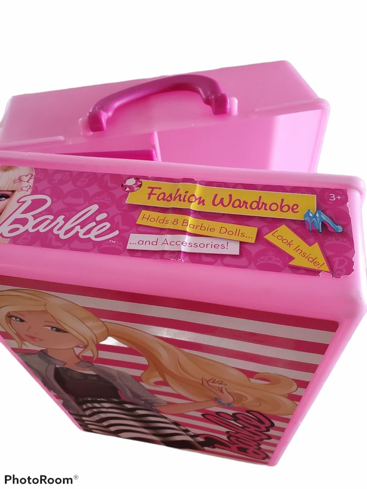2011 Barbie Fashion Wardrobe Carry Case Used With Dolls and Accessories. Condition is "Used". Please note some accessories are not a complete pair ( shoes etc.) And top sticker is slightly coming up. Also all 3 dolls need a good hair brushing ( see pictures)