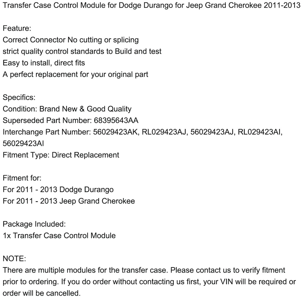 You may also like Radar Cruise Control Distance Sensor ML3T-9G768-AL for Ford F150 2021-2023 129.58 USD 137.85 USD Free shipping 6% off Steering Wheel Button Switch Control Module for Golf Tiguan Jetta 5K0959542B H1 56.86 USD 59.85 USD Free shipping 5% off Integrated Supply Module 12638645514 fit BMW X3 X4 X5 X6 xDrive28i xDrive35i 3.0 44.85 USD Free shipping Trunk Lid Tailgate Back Door Control Module Unit For BMW X5 E70 61357335274 U4 86.85 USD Free shipping P68416520AA 68409906AB Transfer H0se Control Module For Jeep Wrangler 2019-2020 118.85 USD Free shipping Steering Column Module for Jeep Grand Cherokee WH 08-10 5026132AC LHD 124.85 USD Free shipping Computer Engine Control ECU ECM Module A2721533779 for Mersedes ME9.7 M272 US 483.85 USD Free shipping 1645407945 Rear SAM Module for Mercedes ML350 X164 W164 W251 GL320 H1 349.85 USD Free shipping Transfer Case Control Module 04854747AC For Jeep Grand Cherokee 2012-2013 US 141.85 USD Free shipping Transfer Case Control Module for Dodge Durango 2021 68499620AA 68499620AB H1 109.85 USD Free shipping Wireless Charging Module for 2018-2020 GM w 2015-2017 Adapter Harness 13521066 H 60.02 USD 63.85 USD Free shipping 6% off 0009001808 Control Unit Parking Aid Control Module for MercedesBenz W205 C180 H1 206.85 USD Free shipping Distance Radar Cruise Control Module LB5Z-9E731-AB for Ford Explorer 2020-2023 H 220.76 USD 234.85 USD Free shipping 6% off 37146860385 Air Suspension Control Unit for BMW 5 7 Series F07 F01 F02 F04 H10 66.85 USD Free shipping Speedometer Calibration Procal Module 30406007 For Jeep JK Wrangler 2007-2018 US 84.46 USD 89.85 USD Free shipping 6% off 37146793163 37146778966 Air Suspension Control Module for BMW X5 E70 X6 E71 H10 66.85 USD Free shipping NEW-00004 Transfer Case Control Module for Dodge Durango for Jeep Grand Cherokee 2011-2013 Transfer Case Control Module for Dodge Durango for Jeep Grand Cherokee 2011-2013 Feature: Correct Connector No cutting or splicing strict quality control standards to Build and test Easy to install, direct fits A perfect replacement for your original part Specifics: Condition: Brand New & Good Quality Superseded Part Number: 68395643AA Interchange Part Number: 56029423AK, RL029423AJ, 56029423AJ, RL029423AI, 56029423AI Fitment Type: Direct Replacement Fitment for: For 2011-2013 Jeep Grand Cherokee Laredo Sport Utility 4-Door 3.6L /5.7L For 2011-2013 Jeep Grand Cherokee Limited Premium Sport Utility 4-Door 5.7L For 2011-2013 Jeep Grand Cherokee Limited Sport Utility 4-Door 3.6L /5.7L For 2011-2013 Jeep Grand Cherokee Overland Sport Utility 4-Door 3.6L /5.7L For 2012-2013 Jeep Grand Cherokee Laredo X Sport Utility 4-Door 3.6L /5.7L For 2012 Jeep Grand Cherokee Overland Summit Sport Utility 4-Door 3.6L /5.7L For 2012-2013 Jeep Grand Cherokee SRT8 Sport Utility 4-Door 6.4L For 2012-2013 Jeep Grand Cherokee Laredo E Sport Utility 4-Door 3.6L For 2013 Jeep Grand Cherokee SRT Sport Utility 4-Door 6.4L For 2013 Jeep Grand Cherokee Trailhawk Sport Utility 4-Door For 2011-2013 Dodge Durango Citadel Sport Utility 4-Door 3.6L /5.7L For 2011-2013 Dodge Durango Crew Sport Utility 4-Door 3.6L /5.7L For 2011 Dodge Durango Express Sport Utility 4-Door 3.6L For 2011 Dodge Durango Heat Sport Utility 4-Door 3.6L For 2011-2013 Dodge Durango R/T Sport Utility 4-Door 5.7L For 2011-2013 Dodge Durango SXT Sport Utility 4-Door 3.6L For 2012-2013 Dodge Durango Base Sport Utility 4-Door 3.6L For 2012-2013 Dodge Durango Crew Luxe Sport Utility 4-Door 3.6L /5.7L For 2012-2013 Dodge Durango Crew Plus Sport Utility 4-Door 3.6L /5.7L For 2012-2013 Dodge Durango Special Service Sport Utility 4-Door 3.6L /5.7L Package Included: 1x Transfer Case Control Module Note: The Transfer Case Control Module is designed the professional installer. It does not come with any installation instructions. If you do not have a service manual please consult a professional mechanic prior-installing it. NOTE: To ensure you have 100% satisfied shopping experience, please check the Specification and Description and Pictures all carefully to make sure the product are the same with what you want before purchasing. Thanks for your cooperation! About Us Shipping Terms Of Sale Contact Us Areyourshop has committed to do our utmost to serve more vehicles models with the most competitive products both in price and service, including headlights, foglights, taillights,headlight assembly, etc., aiming at the largest group of customers. Paired with our fast shipping and satisfaction guarantee, we’re able to ensure that all the customers can get the product when they need it. Customer Satisfactory 1.We back our commitment with superb service, 100% full money back and a customer satisfaction guarantee. 2.I am here and ready to assist you with any questions or concerns you might have before or after the purchase. 3.My goal is to make sure you are a happy customer and pleasant shopping with us. Feedback If you are satisfied with the purchase and our total service, your comment is very important in our business success. Please take a minute to leave us a positive feedback with an overall Detailed Selling Rating (DSR) of 5. Our eBay account setup auto feedback, so eBay system gives you automatically Positive feedback back after your positive feedback left. If you plan to give us a neutral/negative feedback Or open ebay/paypal case, please write to us immediately so that we can do our best to resolve your problem. Shipping Time 1. Usually, Parcel will be delivered 7-10 working day . Please note that we do not handle any orders in weekend nor holidays, all orders come during weekends or holidays will be processed in next working day. 2. The estimated arrival times are specified directly from information provided by our couriers. 3. Please understand that once the order is accepted by courier, it's out of our control. Shipping could be delayed by various reasons such like the weather, strike, or anything unexpected, we don't take responsibility for delay due to