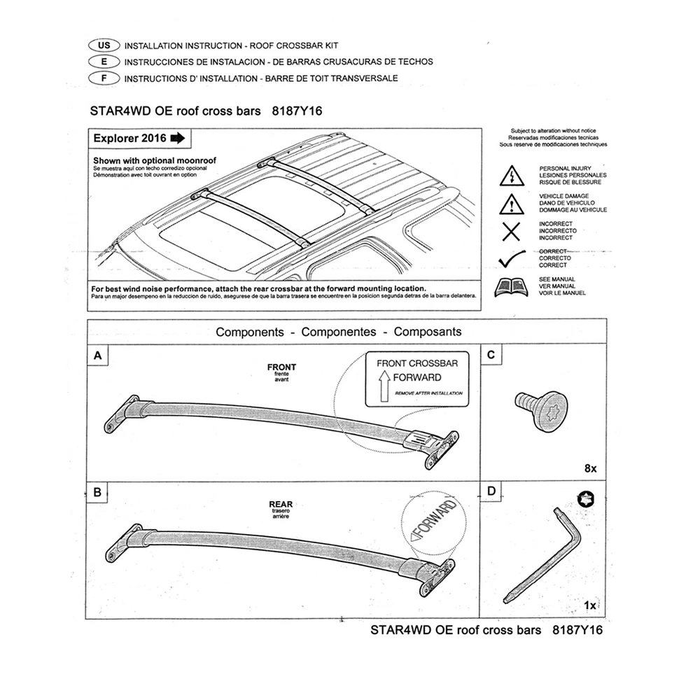Item-Describe: Condition: 100 % Brand new Material: Aluminum Type: Roof Rack High quality aluminum alloy Dedicated car only,fits highly with luggage rack Easy to install,Hole-free installation Supporting Capacity: 75kg Item-Fitment: For 2011-2015 Ford Explorer Item-Includes: 2 x Roof Rack Please Note: Autodealsparts Top Roof Side Rail For 2011-2015 Ford Explorer Roof Rack Set Lugggage Carrier Item-Describe: Condition: 100 % Brand new Material: Aluminum Type: Roof Rack High quality aluminum alloy Dedicated car only,fits highly with luggage rack Easy to install,Hole-free installation Supporting Capacity: 75kg Item-Fitment: For 2011-2015 Ford Explorer Item-Includes: 2 x Roof Rack Please Note: Please check the model according to the auto parts list to avoid the model not fit after purchase! Item Specifics Brand AUT Manufacturer Part Number AUT1066280US Condition 100%New Placement on Vehicle Roof,Top Warranty 5 year Color Black Number of Pieces 1 set Fitment 2011-2015 Ford Explorer Features waterproof Surface Finish Powdercoated Fitment Type Direct Replacement Material Aluminum Fast ship Time Same Day Shipping Before 12PM PST Shipping Free and Fast shipping within USA Type Roof Rack Surface Finish Polished Weight Capacity 75kg Payment We accept multiple payment methods Shipping 1. We only ship to confirmed paypal addresses, your paypal address must match your shipping address. 2. All domestic orders will be shipped via USPS, UPS or Fedex from our US warehouse and usually arrives to your door in about 2-7 business days. 3. If you have not received your shipment within 15 days from payment , please contact us. We will track the shipment and get back to you as soon as possible with a reply. 4. Local pick up is not available. Returns All of our brand new items come with a 30-days money-back guarantee. Contact Us If you have any question, please contact us. Warning Please check carefully for the fitment before order, thank you. Autodealsparts DESCRIPTION PAYMENT SHIPPING RETURN POLICY CONTACT US Shop Category Store Home AC Compressor Mirrors Oxygen Sensor Roof Rack Engine Repair Kit Engine Air Intake & Exhaust Tonneau Cover Lawn Mower Accessories Car Tools Truck Bed Storage Box Oil Pump & Water Pump Door Handle Running Board Motor Transfer Case Motor Blend Door Actuator Center Console Armrest Secondary Air Pump Windshield Wiper Motor LED headlight Assembly Dipstick Horns complete struts fog lights Pillar Posts Fuse Holder Box winch Shocks Struts Struts & Suspension Kit & Hubs Window Visors Air suspension valve solenoid Fuel Injector Fuel Pump Throttle Body Window Regulator Turbo Turbocharger Window switch CV AXLE Coolant Overflow Tank Mud Flaps Bumper Side Marker Lights ignition Wing and Spoiler cv-2 Mass Air Flow Sensor-MAF Coilover snorkel kit Jeep lift supports Adj. Control Arm VVT Variable Valve Timing Door Lock Actuator Chainsaw Chain Car Moulding Cover Trim Steering Wheel Hole Adapter Golf Cart Accessories Bug Shield Motorcycle Accessories Ramps Cylinder Piston Gasket Kit Valve Cover Valve Rocker Arm Cylinder Head Cover Crankshaft Drive Clutch Radiator Shutter Garden Water Pump Tire Pressure Sensor Camshaft Hydraulic Lifters Dash Board Cover Fuel Tank Accessories Tensioner Sun Visor Power Steering System RV Third Brake Light Strut Mount Coil Springs Brake System Parts ◈ Brake Calipers ◈ Brake Drums & Brake Shoes Electric Dump Tarp Motor Clock Spring Air Dryer Power Brake Booster Leaf Spring Shackle Kit Other Hot Item Roof Rack Rail End Cover Shell Replacement For 03-12 Toyota RAV4 AX30 Wholesale USD 16.91 Tailgate Handle Rear Latch Cargo Door Handle for Toyota Pickup 1989-95 Outside USD 9.69 For 1997 1998 1999 2000 2001 Honda CRV Factory Style Spoiler Wing w/LED ABS USD 43.19 Door Handle Interior Right Passenger RH for Chevy GMC Tahoe Suburban Inside USD 12.09 For 2014-2015 GMC Sierra 1500 Chrome Amber Pair Headlights Assembly USD 175.19 New List Item For 2013-2015 Lexus ES350 ES300h Black Housing LH + RH LED Headlights Assembly USD 250.99 Fits 2002-2004 Toyota Camry Chrome Headlights Assembly Headlight Corner Pair Set USD 77.49 Set of 6 Ignition Coils For Volkswagen Golf 2.8L 2002-2005 UF404 New USD 59.69 For Case IH 1370 1470 1570 2294 2470 2670 4490 4690 A4195 Turbo Turbocharger US USD 120.79 Remote Car Fob + Key Fits Honda Odyssey 3.5L 2005-2010 OUCG8D-399H-A 4bottons USD 23.09 Picture Picture Picture Top Roof Side Rail For 2011-2015 Ford Explorer Roof Rack Set Lugggage Carrier Item-Describe: Condition: 100 % Brand new Material: Aluminum Type: Roof Rack High quality aluminum alloy Dedicated car only,fits highly with luggage rack Easy to install,Hole-free installation Supporting Capacity: 75kg Item-Fitment: For 2011-2015 Ford Explorer Item-Includes: 2 x Roof Rack Please Note: Please check the model according to the auto parts list to avoid the model not fit after purchase! Payment We accept multiple payment methods Shipping 1. We only ship to confirmed paypal addresses, your paypal address must match your shipping address. 2. All domestic orders will be shipped via USPS, UPS or Fedex from our US warehouse and usually arrives to your door in about 2-7 business days. 3. If you have not received your shipment within 15 days from payment , please contact us. We will track the shipment and get back to you as soon as possible with a reply. 4. Local pick up is not available. Returns All of our brand new items come with a 30-days money-back guarantee. Contact Us If you have any question, please contact us. Warning Please check carefully for the fitment before order, thank you. All rights reserved.