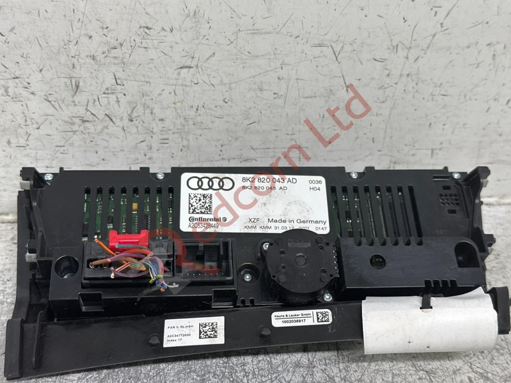 AUDI A5 S Line Tdi 2011-2017 Digital Climate Control Panel Mon-Fri: 8am-5pm | Sat: 8am-3pm | Sun: Closed STORE ABOUT CONTACT FEEDBACK AUDI A5 S Line Tdi 2011-2017 Digital Climate Control Panel Manufacturer Part Number: 8K2820043A0 SKU Code: 56093 Part Number: 51294 Grade: B Please note that goods CANNOT be held; goods aren't confirmed until payment has been completed This Part's Donor Vehicle Vehicle/Model: AUDI A5 S Line Tdi 2011-2017 Bodywork Colour: GREY Interior Trim Colour: Not Available Interior Fabric Colour: Not Available Manufactured Year: 2012 More From This Vehicle DonorVehicle:3581ID More From Similar Vehicles SimilarVehicle:2006NUM Information & Compatability Compatibility is provided on listings to give an indication of some of the cars this part will fit. However, it may not fit your car due to the many differences with specification and changes on model years. Please take eBay's compatibility as a guide. The best and the easiest way to quickly check if the part is right for you is to compare part numbers. We are experts; so, if in doubt please call or message us and our technical team will be happy to advise. Please be aware that our products are sourced from recycled, used cars. The parts are fully functional, tested and have been removed from UK spec, right hand drive vehicles unless otherwise described. However, please note that you can expect general wear and tear corresponding to normal usage for a car of that year and mileage. Any significant damage or defects will be as listed in the item condition. All mechanical items sold from our site for £5 or more benefits from an automatic 14 day REPLACEMENT guarantee. Should any mechanical item with a value over £5 prove defective within 14 days of purchase please contact us and we will arrange for a suitable replacement to be dispatched to you. All items shipped out are security marked - any security marks showing evidence of the item being tampered with, (especially electrical items), will not be refunded or replaced. All engines and gearboxes are tested before removal from the doner vehicle unless otherwise stated. We take every effort to ensure accuracy in our listings but we can offer no guarantee of colour code being available and if it will be a 100% match to your vehicle due to fade and wear and tear. Coloured body panels should be assumed that a repaint will be required. Customers should note that all items sold with a warranty are engraved & marked with security paint. It is in your interest not to interfere with these markings as signs of tampering will void your warranty guarantee. Find Us For any help or advice with this part please get in touch. We are here to help. Please find us on Google Redcorn Ltd . Office Opening Times: Mon-Fri: 8am-5pm, Sat: 8am-3pm, Sun: Closed. eBay Messages will be replied to within business hours. Collection is welcome. Brantwood Rd, London, N17 0DX Redcorn Thank you for choosing Redcorn Ltd for your used car parts. We are salvage car specialists and provide the market with excellent quality used car parts online direct to you. If you require a part for this car which is not listed on our shop please send us a message with your requirements, we will be able to source the part and provide a new listing for you. Huge Range We recycle over 100,000 vehicles per year. After Sale Support We pride ourselves on our aftercare; just contact us for help. Massive Range of Stock We keep a huge range of stock in our purpose built facility. Money Back Guarantee You can get a full refund if you return the goods within 30 days. CONTACT DETAILS Address: Brantwood Rd, London, N17 0DX Phone: 020 8880 9555 QUICK LINKS Our Store About Us Contact Us Feedback REDCORN LTD We have thousands of parts in stock, with new items arriving weekly. Everything you see on our website is in stock ready for immediate dispatch. © Copyright 2024. Redcorn LTD. All Rights Reserved. Powered By Eladene Systems