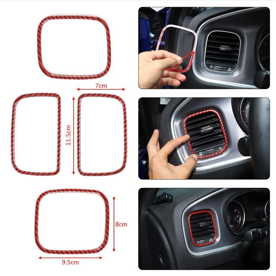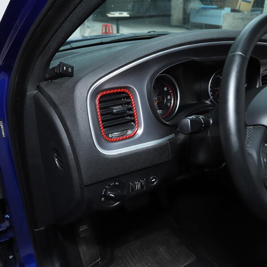 2011-2023 Dodge Charger Red Carbon Fiber Air Vent Cover Trim