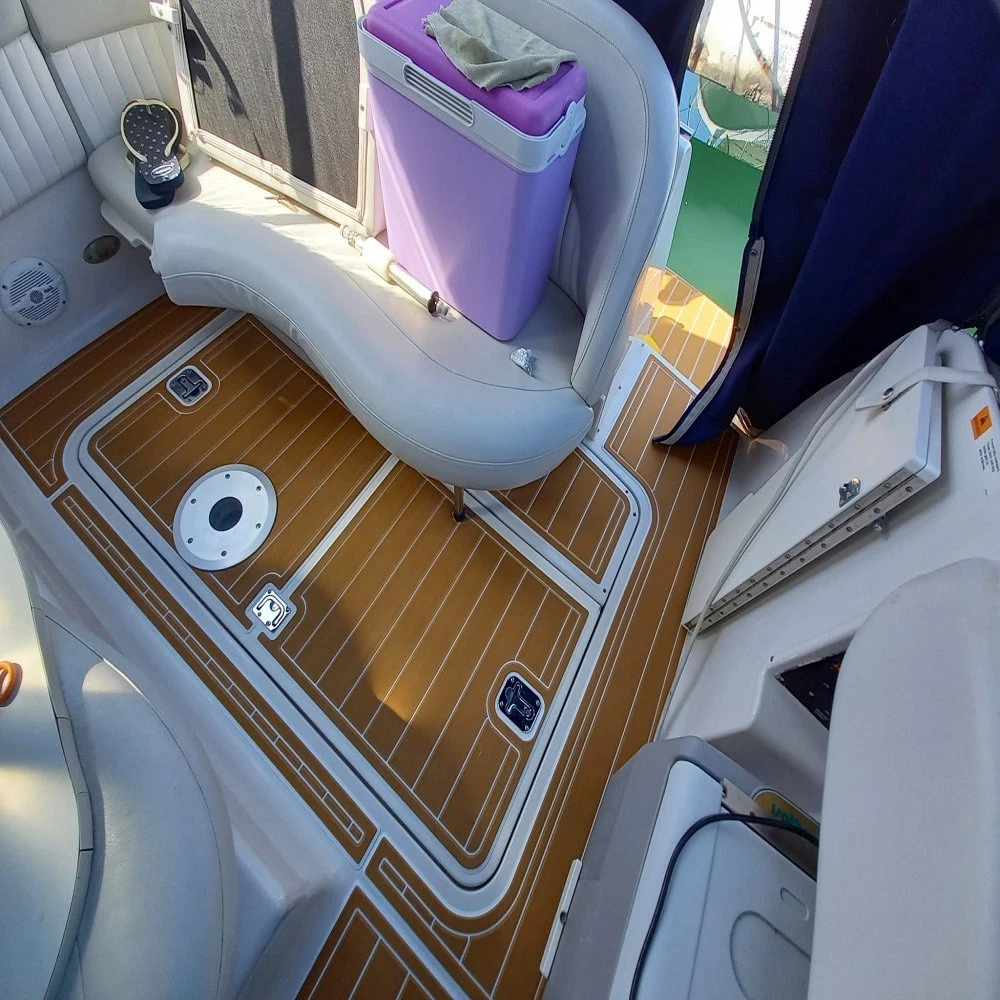 We could not add the 12 floor color options that you can choose to use to each listing because of quantity limit, when you order it, you can just leave an order note for the floor color that you want to use or you can send us a message, we will always check and confirm the floor color with you before we make the floor for you.You can just order it. 2012 Four Winns 348 Vista Swim Platform Pad Boat EVA Foam Faux Teak Deck Floor Mat SeaDek MarineMat Gatorstep Style Self Adhesive Please be aware that we can only make this boat floor by the first listing drawing. Before you order it, please double check the listing drawing outline shapes with your boat to make sure they can fit your boat well. As long as the floor pad outline shape can match your boat deck layout, it should fit well.We will not be hold responsible if the listing drawing floors do not fit your boat well because you do not double check our listing drawing. We can only make sure that the floors will be cut exactly by the listing drawing. If you are not sure if the drawing can fit well with your boat, please send us some photos of your boat deck layout or a short video to show your boat deck layout from stern to bow so we can help you to confirm the fitting. The floor comes with marine backing adhesive.It is peel and stick installation.You just need to peel off the white protection paper and put it down. You do not need to buy glue to install it. We offer 1 year warranty for all our boat floors. The EVA floor is 1/4″(6mm) thick two-color pad. You can choose your colors, texture and faux teak option. Additional custom text logos can also be incorporated on EVA floor. All routed logos and beveled edges will show the bottom color selected. All EVA floors come with marine backing glue. All EVA floors listed on our online store are “made to order” and not stocked so please allow up to 2-3 weeks for delivery. EVA floor fabrication time is about 4-5 days, then it will take about 7-10 days’time to ship and deliver to your order shipping address.After you order it, please double check your order shipping address to make sure all the shipping address, postal code, city name and contact phone number are all correct. We will ship all orders by express shipping such as FedEx, UPS, DHL or EMS express. We will choose the shipping courier as we see fit. EVA hardness: 60-65 ASKER C UV tested: 3000 Hours Thickness: 6mm, 1/4 Inch 1 year quality warranty Color choices: #1 Brown+Black #2 Dark Brown+Black #3 Brown+White #4 Grey+Black #5 Dark Grey+Black #6 Grey+White #7 Grey+Blue #8 Grey+Purple #9 Grey+Red #10Black+White #11 Black+Red #12 Black+Blue When you order it, please tell us the color you want for top layer and bottom layer. Additional custom text logo fee: 50 USD/ea. Before you order it, please verify floor drawing and confirm that it matches your boat and understand that this cannot be returned without a restocking fee of 30%. We can also make the custom EVA teak decking by the template drawing or full size template that you can supply to us. The listing price does not include any destination duties/taxes/custom fees/etc. that will be due when the product arrives at destination countries/regions.It is the customer’s responsibility to pay for all custom duty/taxes/custom fees if any.