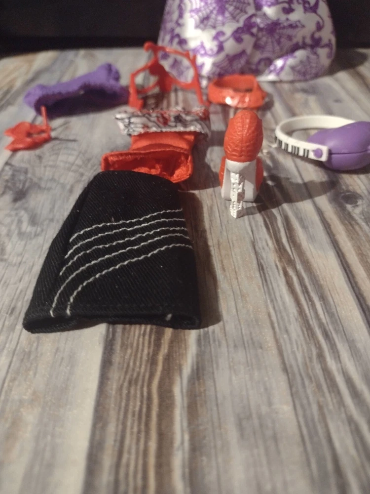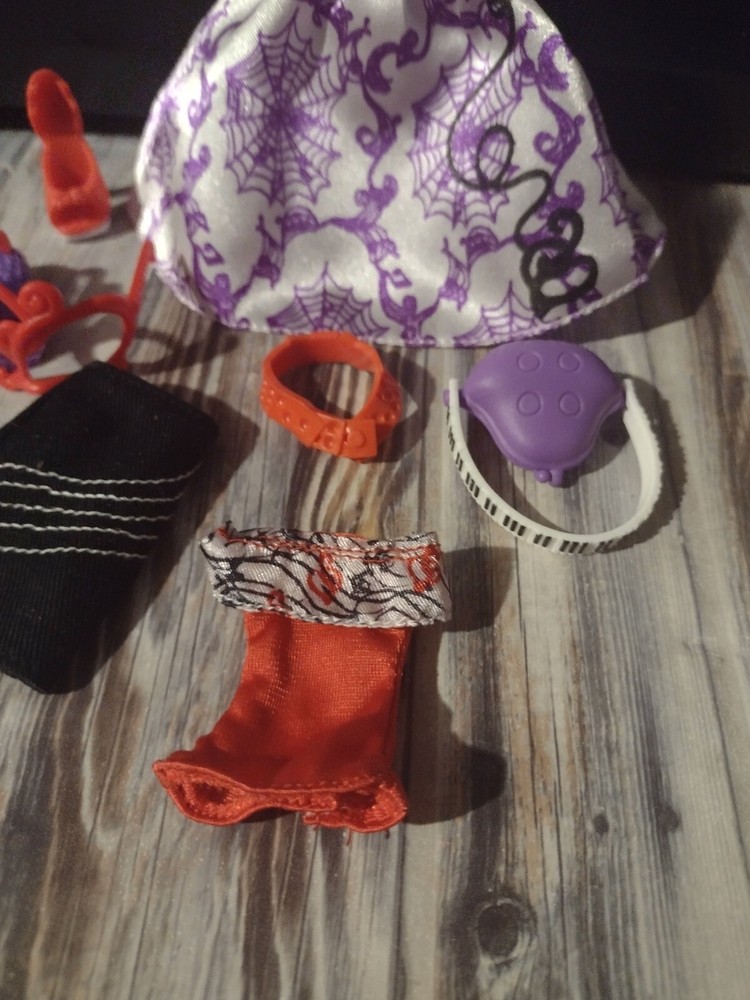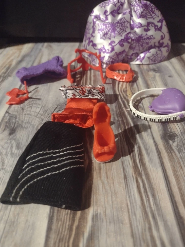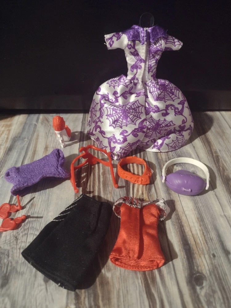 Although listed as used This outfit is new out of package I am selling my personal collection I would open my doll and accessories boxes and store them these pieces have never been on a doll or played with. Clear dress form not included shoe is a single I misplaced the other shoe. The closures have not snagged the clothing no stains or damage. Like new condition.Sold as shown no exchanges or returns. Please see photos for condition of items. Please message me if you have any questions.Thank you for visiting my store.