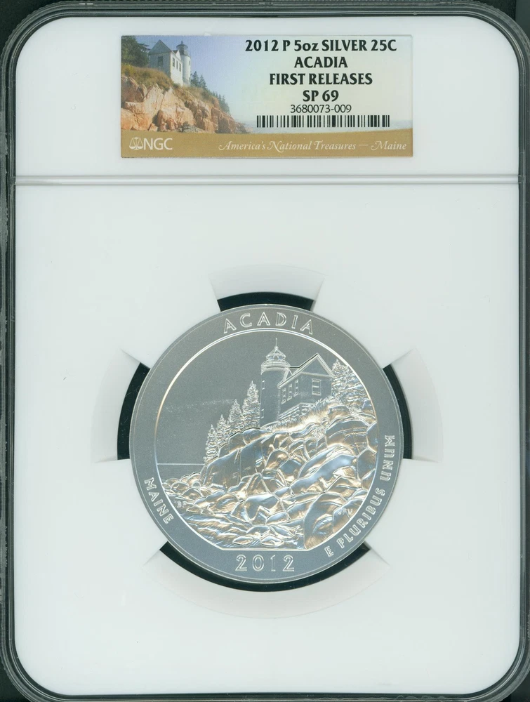 2012-P ACADIA MAINE NATIONAL PARK ATB 5 OZ. SILVER NGC SP69 FIRST RELEASES F.R. Hover any image to see it full size 2012-P ACADIA MAINE NATIONAL PARK ATB 5 OZ. SILVER NGC SP69 FIRST RELEASES F.R. Item Description Near PERFECT Silver !!! 2012-P ACADIA MAINE NATIONAL PARK NGC GRADED SP69 FIRST RELEASES !!!!! ♦ This is a near PERFECT 2012-P AMERICA THE BEAUTIFUL ( ATB ) ACADIA 5 OZ. Silver COIN certified by NGC as SP69 First Releases (Certification # 3680073-009) . ♦ The coin contains approximately 5 ounces of Silver . Shipping Details We ship usually within 3-4 business days of receiving cleared payment. Payment Details Paypal payments ship ONLY to confirmed paypal address. If you cannot pay with paypal, please contact us before bidding to make alternative arrangements. Our Payment Policy Paypal E-Checks accepted. Paypal payments ship ONLY to confirmed paypal address. If you cannot pay with paypal, please contact us before bidding to make alternative arrangements. Our Refund Policy See Return Policy details. Our Feedback Policy FEEDBACK IS AUTOMATICALLY LEFT AFTER BUYERS' FEEDBACK IS RECEIVED. Private Listing To maintain the safety and privacy of our customers, their usernames are kept private, in view of the high value of this item. About Us au3000 specializes in certified US rare coins. We feature one of the most extensive selection of rare US coins, certified by PCGS, NGC, ANACS, ICG and other grading companies. Although there are some differences among the different grading services (remember grading is subjective, and we let our customers decide which grading service they are most comfortable with), we feel that the certification process by a grading service takes some of the guess work out of buying coins. Unless you are an expert, buying "raw" (i.e. uncertified) coins can turn out to be a stressful experience. Our Ebay Store (au3000) features an extensive selection of rare US coins. We have maintained an OUTSTANDING FEEDBACK on Ebay (100%) with OUTSTANDING customer satisfaction. We only buy (and sell) coins with outstanding eye appeal for the grade. We are also able to provide our coins at very competitive prices. We do this by keeping our costs and overhead low. By doing so, we are able to pass the savings to our customers. If you are looking for great looking coins at very competitive prices, you have come to the right place !! We stand behind our coins and offer a no-question asked return policy on non-bullion items (see listings for details). Our goal has always been and always will be to make coin buying both stress free and rewarding for our customers !!! If you have any specific numismatic question, please feel free to email us. You will receive an honest answer, and there is never any obligation. Also, if you are looking for a coin that you do not see, please let us know. We have a lot more coins than we are able to list on time. Have fun, and let us be part of your numismatic experience. ANY QUESTIONS ? Email us through the Ebay message system. The staff at au3000 au3000 (au3000) $1 Dollar Gold $10 Indian Eagles $10 Liberty Eagles $2.5 Classic Quarter Eagles $2.5 Indian Quarter Eagles $2.5 Liberty Quarter Eagles $20 Liberty Double Eagles $20 Saint Gaudens Double Eagle $3 Three Dollar Gold Pieces $5 Classic Half Eagles $5 Indian Half Eagles $5 Liberty Half Eagles Bullion Early Gold Commemoratives Modern Gold Commemoratives Modern Silver Commemoratives Morgan Silver Dollars Peace Silver Dollars Type coins Walking Liberty Half Dollars - Feedback - Profile - Other Auctions -