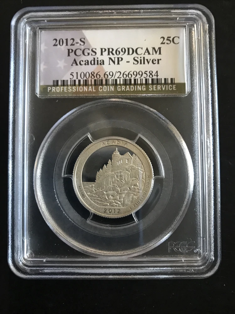 2012-S 25c SILVER PCGS PR69 CAM ACADIA NATIONAL PARK QUARTER PROOF DEEP CAMEO. Shipped with USPS First Class.