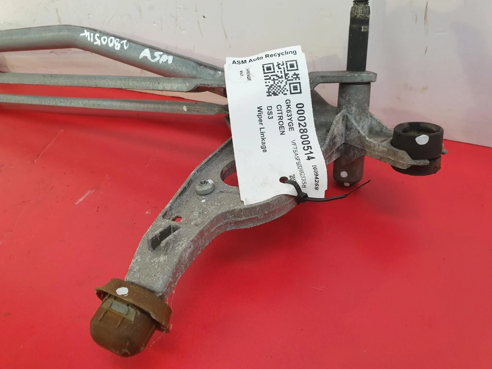 2013 CITROEN DS3 3 DOOR HATCHBACK FRONT WIPER LINKAGE 2013 CITROEN DS3 3 DOOR HATCHBACK FRONT WIPER LINKAGE Part description This listing is for the pictured front wiper Linkage removed from a 2013 CITROEN DS3 3 Door Hatchback Please make sure the part number is correct for your vehicle before buying The part was tested upon removal and comes with a 90 day guarantee If you are unsure about fitment to your vehicle please message us through ebay. IMPORTANT INFORMATION Please ensure there is a current contact number provided on checkout as this avoids failed deliveries All deliveries require a signature so please have items delivered to an address where there will be someone to receive and sign for goods Please note that there are Re-delivery charges if no one at the address to receive goods and this is usually around 75% of original postage charge and would be at Buyers expense ( We would not cover these charges ). Items that are for collection only are to be paid for by cash or card on arrival, PayPal payments will not be accepted for these items due to no seller protection without proof of delivery. BHP 120.00 BHP Body Shape Hatchback Condition Above Average Engine 4 Cyl Engine Capacity 1598 cc Engine Code EP6C (5FS) Fuel Type Petrol Manufacturer CITROEN Manufacturer Colour UNK Mileage 999999 Miles Model DS3 Model Group DS3 Part Colour Black Part Description Mk1 Tag Number 0002800514 Transmission Speed 5 Transmission Type 5 Speed Manual Trim DSTYLE Vehicle Colour Black Year 2013 View listed parts from the same vehicle Click here --> Our Ref:0002800514 About Us All our parts are covered with a 3 month guarantee unless otherwise stated, the guarantee covers the part only and not any labour charges involved. All our parts are marked or stamped and any parts with these markings removed or tampered with will not be covered with the guarantee. Please make sure all parts are inspected before signing to ensure the item has not been damaged in transit. If the courier refuses simply write "DAMAGED" and do NOT sign. Once an item has been signed for we cannot process any claim with the courier company. If on inspection the item is damaged do not sign for it and contact us as soon as possible. If the part has been ordered incorrectly then you must return it to us at your own cost and we will look to supply you with the correct part. If we cannot supply you with a replacement within 48 hours we will issue a refund with a 20% handling fee. You must contact us within 48 hours first before returning and this must be done within 14 days of receiving the part. Please note we ship to UK mainland only, overseas buyers to arrange shipment of items bought. We can package items ready for collection, packing costs will be added to do so. Terms & Conditions Established for over 20 years, ASM Auto Recycling is widely regarded as one of the UK's most modern and professional vehicle salvage agents and parts recyclers. Although the company has grown and invested significantly over the years to become one of the key players in the vehicle recycling industry, we pride ourselves on the fact that we have managed to retain the core 'family' values that our business was built upon, by trying to provide our customers with the desired levels of service, experience and enthusiasm that we would like to be given ourselves! At present we process over 15,000 end-of-life vehicles every year and specialise in online salvage auctions with over 1,000 damage-repairable and stolen-recovered cars, vans and bikes available for purchase every single week. We also boast an extensive used car parts centre. With over 2,000 vehicles stored at our premises for vehicle dismantling, we can supply used car parts for a large number of vehicles in the UK and across the world. Shipping costs for palletised items will vary for Scotland and the Highlands please contact us for a quote before purchasing This listing is for the pictured Wiper Linkage removed from a 2013 CITROEN DS3 1598 Petrol with an engine code of EP6C (5FS) and 6405QE miles. Please make sure the part number is correct for your vehicle before buying. The Wiper Linkage were tested upon removal and comes with a 90 day guarantee. If you are unsure about fitment to your vehicle please message us through ebay. © ASM Auto Recycling Ltd. Registered in England no. 01721363. Web design: MediaForge by Actopia.