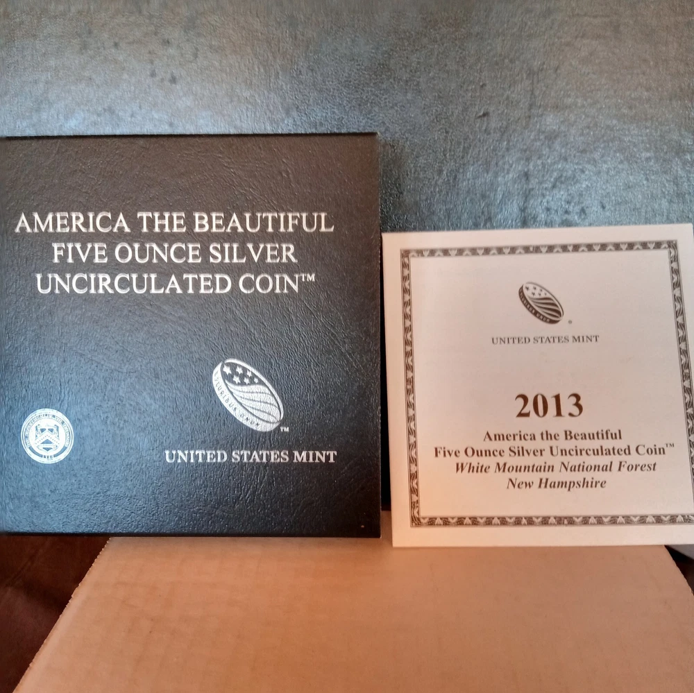 2013 P - White Mountain National Forest - 5 oz Silver - Mint Box & COA - .999 Fine - NQ 5. Shipped with USPS Ground Advantage.