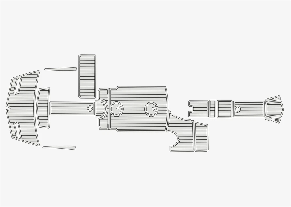 We could not add the 16 floor color options that you can choose to use to each listing because of quantity limit, when you order it, you can just leave an order note for the floor color that you want to use or you can send us a message, we will always check and confirm the floor color with you before we make the floor for you.You can just order it. Please be aware that we can only make this boat floor by the first listing drawing. Before you order it, please double check the listing drawing outline shapes with your boat to make sure they can fit your boat well. As long as the floor pad outline shape can match your boat deck layout, it should fit well.We will not be hold responsible if the listing drawing floors do not fit your boat well because you do not double check our listing drawing. We can only make sure that the floors will be cut exactly by the listing drawing. If you are not sure if the drawing can fit well with your boat, please send us some photos of your boat deck layout or a short video to show your boat deck layout from stern to bow so we can help you to confirm the fitting. The floor comes with marine backing adhesive.It is peel and stick installation.You just need to peel off the white protection paper and put it down. You do not need to buy glue to install it. We offer 1 year warranty for all our boat floors. The EVA floor is 1/4″(6mm) thick two-color pad. You can choose your colors, texture and faux teak option. Additional custom text logos can also be incorporated on EVA floor. All routed logos and beveled edges will show the bottom color selected. All EVA floors come with marine backing glue. All EVA floors listed on our online store are “made to order” and not stocked so please allow up to 2-3 weeks for delivery. EVA floor fabrication time is about 4-5 days, then it will take about 7-10 days’ time to ship and deliver to your order shipping address.After you order it, please double check your order shipping address to make sure all the shipping address, postal code, city name and contact phone number are all correct. We will ship all orders by express shipping such as DHL, FedEX, USP or EMS express. We will choose the shipping courier as we see fit. Color choices: #1 Black over Brown #2 Black over Dark Grey #3 Black over Green #4 Black over Red #5 Black over White #6 Brown over Black #7 Brown over White #8 Coffee over Black #9 Dark Grey over Black #10 Dark Grey over Grey #11 Grey over Black #12 Grey over blue #13 Grey over Purple #14 Grey over Red #15 Grey over White #16 Black over Blue When you order it, please tell us the color you want for top layer and bottom layer. Additional custom text logo fee:50 USD/ea. Before you order it, please verify floor drawing and confirm that it matches your boat and understand that this cannot be returned without a restocking fee of 30%. We can also make the custom EVA teak decking by the template drawing or full size template that you can supply to us. The listing price does not include any destination duties/taxes/custom fees/etc. that will be due when the product arrives at destination countries/regions. It is the customer’s responsibility to pay for all custom duty/taxes/custom fees if any. 1.EVA material is a high-density sponge, does not absorb moisture 2.No blackening/darkening in humid environment 3.Hardness: Around 55-50 degrees 4.Soft & Comfortable 5.Easy maintenance(Use of common cleaning agents, rinse with brush and water 6.High and low temperature resistance 7.Sound insulation and anti-vibration 8.Easy replacement,Easy installation,No additional auxiliary materials required 9.UV resistant without color fading 10.Support for customized services(Colors and patterns) Precautions before payment: 1.Please check if the boat model match your Yacht model。 2.Some ship models have different configurations with different options, please pay attention to choose the most suitable one 3.If not sure whether your ship matches the drawings, please send us photos of swim platform and cockpit, we could help to determine if it is appropriate 4..If need to verify the size, please feel free to contact us Order colors: 1.If request color not included in color cards, need to waiting the other 10-15 days. Parcels can be sent out within 20 days(Start from the moment of payment done), extend the cycle when it comes to holidays 2.The picture colors for reference only, based on actual color(Photos taken by cell phones easy to present the chromatic aberration) For design: 1.We could design drawings according to the customer’s requirements(Free of Charge) 2.We could provide design drawings for your choices 3.Support LOGO customization(50USD/ea), document is needed, format file: DXF/AI/PDF/JPJ/PNG etc. For Installation: 1.Need to use acetone or alcohol to clean the floor before installation(To remove surface wax of new ships), make sure it is dry before starting the installation. 2.Lay all EVA floors flat before installation. When confirming the location, tear off the backing adhesive from one corner and start the installation 3.Fix it when pasting, cannot move EVA floors 4.Rolling with round rollers during installation process(Need to finger press LOGO position in advance to avoid air in it). If air generated, remove it by use of a small needle to pierce the air bubble 5.No soaking within 48 hours after installation Making Templates: If no matching ship model in our sale list, pls provide template we could produce it based on your template’s requirement Reference image to create template Make a note in the package to remark contact details, name, the brand of small ship/model/year of production, we will contact you immediately We will send design drawings to you for confirmation within 5 days after template received Complete production and send package within 3-5 days after confirmation of drawings(after payment done) Package: Soft material. Rolled and packed for shipment. Outer box package Shipment Express courier: DHL FEDEX TNT UPS 