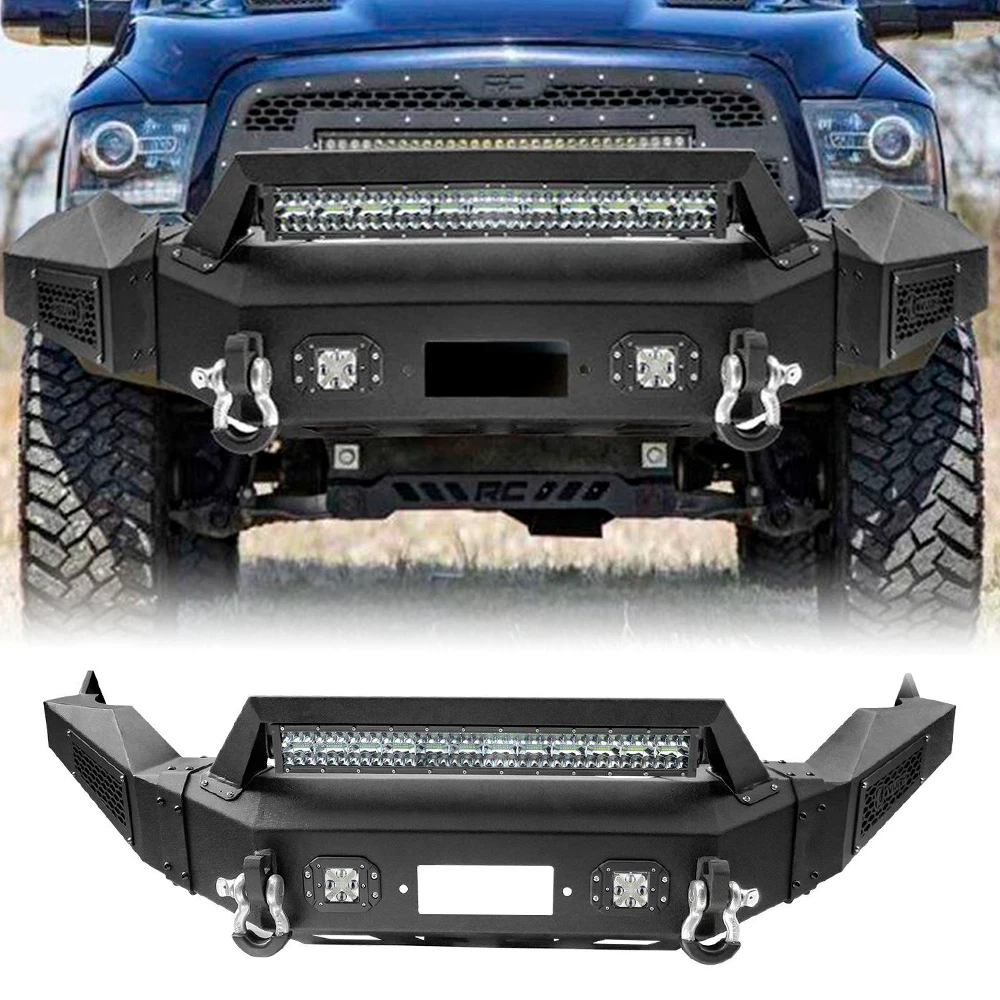 100% Brand New High Quality Factory Price US Stock 60 Days Return Product View Product Details Fitment: Fits 2013 - 2018 Dodge Ram 1500 (Excluding Rebel) Features: Front bumper material: 5/32" thick low carbon hard steel and 2" x 0.120" precision tolerance steel tube for a harder, more durable bumper, advanced three-stage black powder coating, corrosion and durability. Built-in 1 144W LED lights and features four powerful 4 18W LED fog lights for a beautiful look. Two 4.75-ton high-strength, high-D-rings and two D-ring aprons look great,and the built-in winch plate supports the 12,000-pound winch. Easy to install. No cutting or drilling required. Secure directly with screws.Professional installation recommended. Specification: Codition:100% Brand New Color: Black Material: Carbon steel Package Included: 1x Front Bumper 1x 144W LED Light Bar 4x LED Light pods 2x D-rings Mounting Hardware Payment Shipping Returns Contact Us Feedback Payment We accept PayPal, Google Pay, VISA, Master Card, Amex. Credit card payment can also be made via PayPal. Please make sure your eBay address is correct before you pay. All unpaid cases will be opened automatically after 7 days because eBay charges for the final value of the transaction. Shipping United States orders are shipped by USPS/UPS/Fedex , usually take 3-6 business days to complete delivery. Package will be sent out within 24 hours after the pament is completed. Delivery is not available on weekends, public holidays or after business hours. Returns We will accept returns or refund or exchange if the item is not used and marked within 60 days from the date of purchase. If you received wrong of defective items, please take photos and contact us to confirm. We must protect your interest as promsied. Remember to contact us via eBay message firstly. Contact Us Our online store opens 24 hours a day and 7 days a week. Office opening time: Monday to Friday 9:00AM-5:00PM. For inquires and customer support, please send your email via ebay email system. We will reply to you within 24 hours during business days. Ask us about bulk discounts if you want to buy 3 or more. Feedback We apprecaite your business and strived to improve our customer service and our commitment to quality. We will leave a postive feedback immediately after payment is received. If for some reason there are any issues with the purchase, please contact us before leaving feedback, and we will be glad to work with you to have it resolved. On Nov 12, 2024 at 01:04:55 PST, seller added the following information: On Nov 20, 2024 at 21:24:12 PST, seller added the following information: