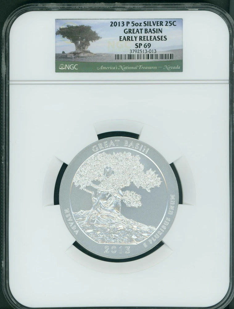 2013-P GREAT BASIN NATIONAL PARK ATB 5 OZ. SILVER NGC SP69 EARLY RELEASES E.R. Hover any image to see it full size 2013-P GREAT BASIN NATIONAL PARK ATB 5 OZ. SILVER NGC SP69 EARLY RELEASES E.R. Item Description Near PERFECT Silver !!!!! AMERICA THE BEAUTIFUL series !!! 2013-P GREAT BASIN NATIONAL PARK NGC GRADED SP69 EARLY RELEASES !!!!! ♦ This is a near PERFECT 2013-P AMERICA THE BEAUTIFUL ( ATB ) GREAT BASIN 5 OZ. Silver COIN certified by NGC as SP69 Early Releases (Certification # 3792513-013) . ♦ The coin contains approximately 5 ounces of Silver . Shipping Details We ship usually within 1-2 business days of receiving cleared payment. We do NOT ship to the state of Minnesota. Our Payment Policy Paypal E-Checks accepted. Paypal payments ship ONLY to confirmed paypal address. If you cannot pay with paypal, please contact us before bidding to make alternative arrangements. Our Refund Policy See Return Policy details. Our Feedback Policy FEEDBACK IS AUTOMATICALLY LEFT AFTER BUYERS' FEEDBACK IS RECEIVED. Private Listing To maintain the safety and privacy of our customers, their usernames are kept private, in view of the high value of this item. About Us au3000 specializes in certified US rare coins. We feature one of the most extensive selection of rare US coins, certified by PCGS, NGC, ANACS, ICG and other grading companies. Although there are some differences among the different grading services (remember grading is subjective, and we let our customers decide which grading service they are most comfortable with), we feel that the certification process by a grading service takes some of the guess work out of buying coins. Unless you are an expert, buying "raw" (i.e. uncertified) coins can turn out to be a stressful experience. Our Ebay Store (au3000) features an extensive selection of rare US coins. We have maintained an OUTSTANDING FEEDBACK on Ebay (100%) with OUTSTANDING customer satisfaction. We only buy (and sell) coins with outstanding eye appeal for the grade. We are also able to provide our coins at very competitive prices. We do this by keeping our costs and overhead low. By doing so, we are able to pass the savings to our customers. If you are looking for great looking coins at very competitive prices, you have come to the right place !! We stand behind our coins and offer a no-question asked return policy on non-bullion items (see listings for details). Our goal has always been and always will be to make coin buying both stress free and rewarding for our customers !!! If you have any specific numismatic question, please feel free to email us. You will receive an honest answer, and there is never any obligation. Also, if you are looking for a coin that you do not see, please let us know. We have a lot more coins than we are able to list on time. Have fun, and let us be part of your numismatic experience. ANY QUESTIONS ? Email us through the Ebay message system. The staff at au3000 au3000 (au3000) $1 Dollar Gold $10 Indian Eagles $10 Liberty Eagles $2.5 Classic Quarter Eagles $2.5 Indian Quarter Eagles $2.5 Liberty Quarter Eagles $20 Liberty Double Eagles $20 Saint Gaudens Double Eagle $3 Three Dollar Gold Pieces $5 Classic Half Eagles $5 Indian Half Eagles $5 Liberty Half Eagles Bullion Early Gold Commemoratives Modern Gold Commemoratives Modern Silver Commemoratives Morgan Silver Dollars Peace Silver Dollars Type coins Walking Liberty Half Dollars - Feedback - Profile - Other Auctions -