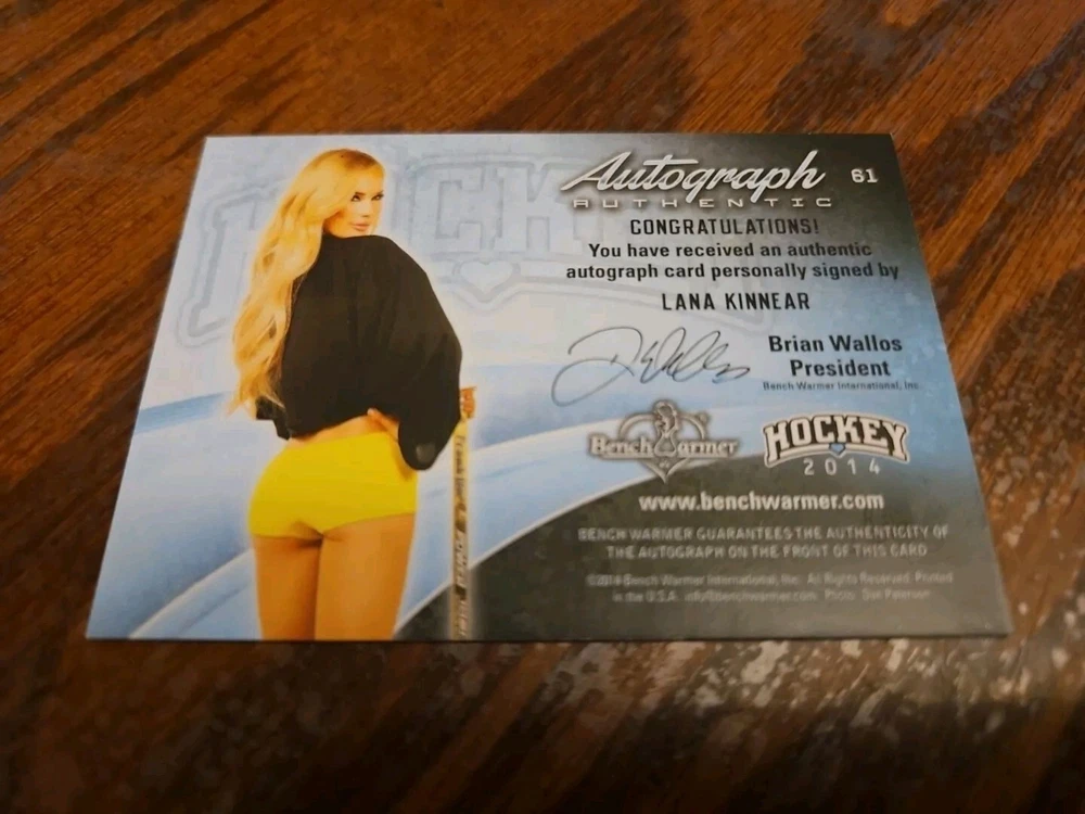 2014 Benchwarmer Hockey Autograph Gold Foil Card Lana Kinnear #61 Auto Playboy Lana Kinnear is best known for her role as Lana Star a professional wrestler on Wow Superheroes. Lana has also made numerous appearances on the Jimmy Kimmel show in comedic roles. In 2016 Lana landed a recurring role playing Sandy the gold digging wife of Gooch in the new Cameron Crow showtime series "Roadies". Lana also played opposite Robert Downey Jr. in the first installment of the Iron Man franchise. Lana lives in Southern California and in her spare time she trains her Weimaraner in field events. Played for the New York Euphoria in the Lingerie Women's Football Bowl. Please, look at all the pictures. Please check out my other eBay accounts... https://www.ebay.com/usr/kimmyrael https://www.ebay.com/usr/matlac99 https://www.ebay.com/usr/lacr6837 https://www.ebay.com/usr/malac9440 https://www.ebay.com/usr/lacr_3567 https://www.ebay.com/usr/lacroki8 https://www.ebay.com/usr/lacroki9 Shipping only to the continental US unless you contact me first. Will combine shipping!!!