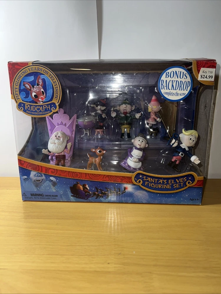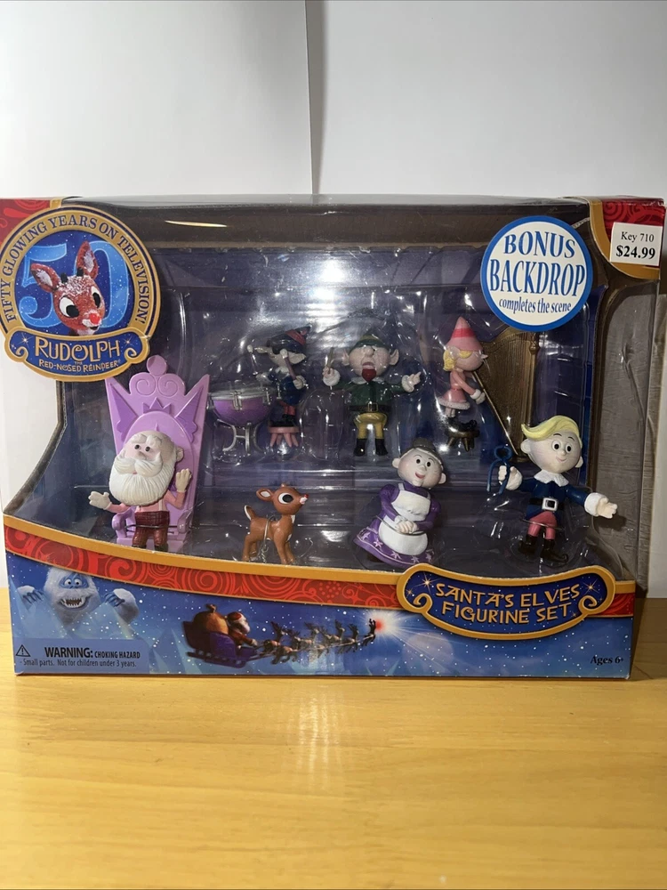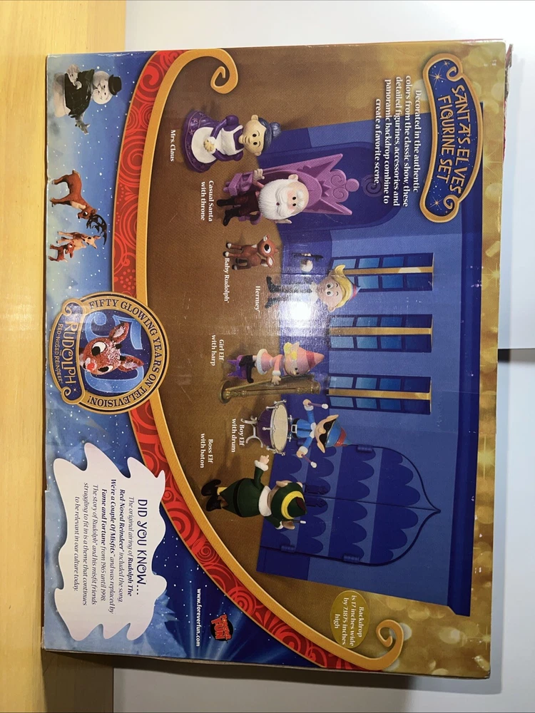 This beautiful figurine set from Rankin Bass features Rudolph the Red Nosed Reindeer and his elf friends. Perfect for the holiday season, this collectible set is sure to bring joy to your home. The intricate details and vibrant colors make it a great addition to any collection. Celebrate the magic of Christmas with this charming figurine set. Made by Bass, this piece is crafted with care and attention to detail. The red and green colors scheme perfectly captures the holiday spirit. Add this to your collection of holiday decorations and make your home feel cozy and inviting.