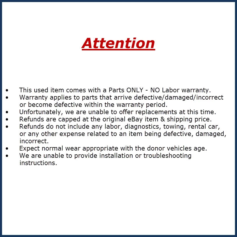 This will fit the following vehicles... (CLICK HERE) 2014-2017 Acura RLX Auto Dimming Rear View Mirror OEM LKQ Vehicle Fitment & Product Details - Please Check Vehicle Fitment Below Prior To Purchasing This LKQ Online listing is in good, used, working condition and comes as pictured. This will fit: Acura RLX 2014-2017 Donor Vehicle & Part Information Vehicle Year: 2014 Vehicle Make: Acura Vehicle Model: RLX vehicle identification #: JH4KC1F54EC005778 Vehicle Stock #: $V44183-321 Part # or Vehicle Model: RLX Warranty: 90 Day Warranty (Parts ONLY - NO Labor) LKQ SKU: LKQ321 ~363723578 MIR51519 Click here for any additional parts from this Donor Vehicle PLEASE NOTE: You will only receive what is pictured unless otherwise stated in the description. Please do not assume anything else will be included if it is not pictured. All of the parts we sell are guaranteed to be in good working condition unless otherwise noted. We ONLY guarantee the part(s) will fit the vehicle(s) listed in the description. If your vehicle was not originally equipped with the EXACT part(s) listed, it is your responsibility to consult a dealer to see if it will fit your application. Additional items may be needed if this is an upgrade or custom installation. Please consult your local dealer for ALL other applications. Pricing & Inventory Errors Occasionally, technical glitches may cause parts to be described incorrectly, have incorrect pricing information or cause out of stock/damaged inventory to be listed on eBay. LKQ Online reserves the right to cancel/refund any order that had parts described incorrectly, had incorrect pricing information or was out of stock/damaged. We do our best to prevent these issues from happening and apologize for any inconvenience it may cause. SHIPPING TERMS UPS Ground - Free - Expedited shipping is not available - We do not ship to APO, military addresses, or P.O. Boxes - Check the ebay Shipping and Payments tab for more info International Export Laws & Canada Shipping Policies ATTENTION International Customers: Our TAX ID cannot be used by any CUSTOMER, or its AFFILIATES and SUBCONTRACTORS. CUSTOMER and its AFFILIATES and SUBCONTRACTORS shall comply with all United States laws and regulations controlling the export of certain commodities and technical data, including without limitation all Export Administration Regulations of the United States Department of Commerce. Among other things, these laws and regulations prohibit or require a license for the export of certain types of commodities and technical data to specified countries. CUSTOMER hereby acknowledges that it will comply with, and will cause its AFFILIATES and SUBCONTRACTORS to comply with, all United States export control laws and regulations, that CUSTOMER bears sole responsibility for any export of certain commodities and technical data and any violation of such laws and regulations by itself or its AFFILIATES or SUBCONTRACTORS. CUSTOMER and its AFFILIATES and SUBCONTRACTORS will indemnify, defend, and hold LKQ ONLINE harmless for any consequences of any such violation. We cannot ship to the Canadian Yukon Territory. Orders to the Yukon will be canceled! CA~SKU:22505674 Additional Listings