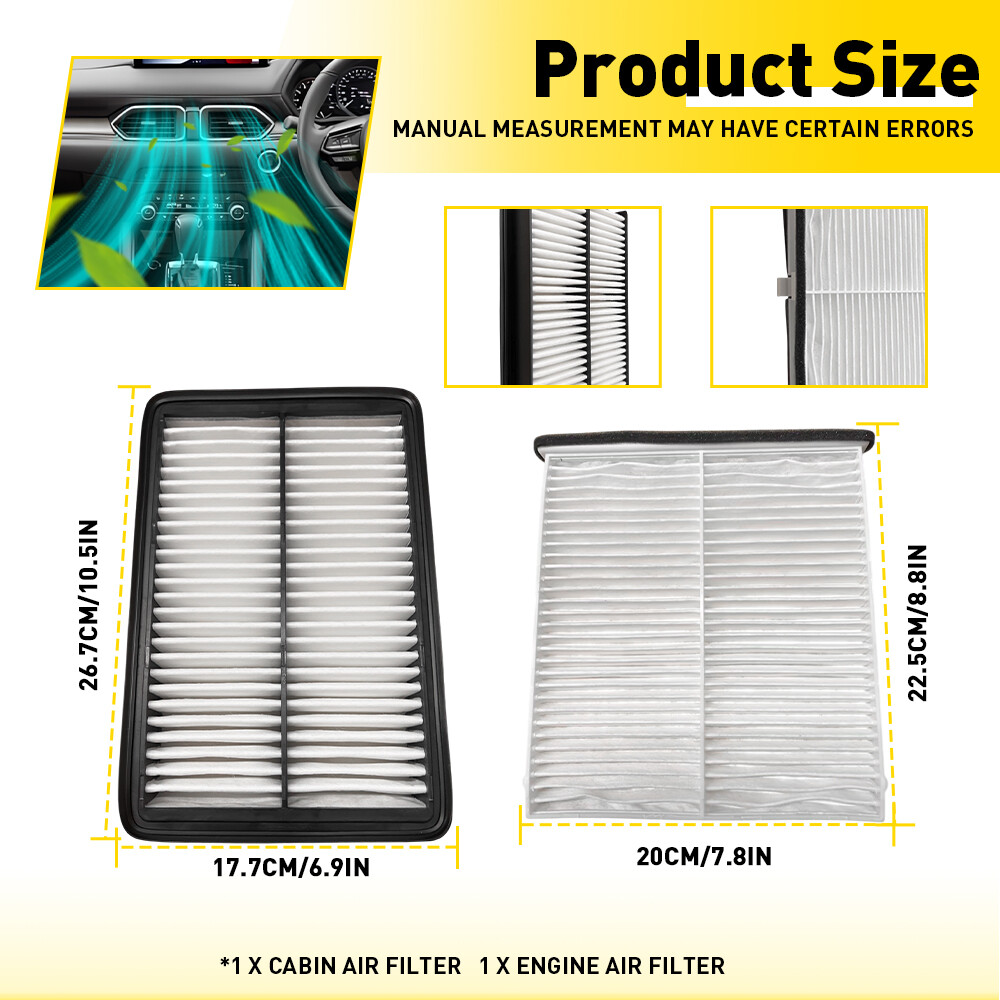 Car Engine&Cabin Air Filter Combo Kit Fits Mazda 3 6 CX-5 2013-2022 PE07-13-3A0A WHY YOU NEED CHANGE YOUR CAR'S AIR FILTER? DUST CLOGS FILTER: LOSS OF FILTRATION, POOR HVAC EFFECT PRODUCE ODOR: BREED BACTERIA,HARMFUL TO HEALTH Fit for: Mazda 3 2014-2018 L4 2.0L Mazda 3 2014-2018 L4 2.5L Mazda 6 2014-2020 L4 2.5L Naturally Aspirated Mazda CX-5 2013-2017 L4 2.0L Mexico Mazda CX-5 2014-2022 L4 2.5L Naturally Aspirated Specifications: OE Numbers: PE07-13-3A0A, KD45-61-J6X AF6280 C38175 ENGINE & CABIN AIR FILTER COMBO SET AF6280 C8175 For 2014-2023 MAZDA 3 6 CX-5 Car Engine&Cabin Air Filter Combo Kit Fits Mazda 3 6 CX-5 2013-2022 PE07-13-3A0A WHY YOU NEED CHANGE YOUR CAR'S AIR FILTER? DUST CLOGS FILTER: LOSS OF FILTRATION, POOR HVAC EFFECT PRODUCE ODOR: BREED BACTERIA,HARMFUL TO HEALTH Fit for: Mazda 3 2014-2018 L4 2.0L Mazda 3 2014-2018 L4 2.5L Mazda 6 2014-2020 L4 2.5L Naturally Aspirated Mazda CX-5 2013-2017 L4 2.0L Mexico Mazda CX-5 2014-2022 L4 2.5L Naturally Aspirated Specifications: OE Numbers: PE07-13-3A0A, KD45-61-J6X AF6280 C38175 Filters out >99% unpleasant smells and pollutants:Dirt/Dust Allergens Bacteria Brake Dust Soot Pollen PM2.5 Pet hair odors & fumes exhaust Features: *Filtering Impurities Effective filtration of impurities or gases ensures that the fluid or gas (e.g., fuel, oil, or air) entering the automobile engine or other important components is pure and free of impurities, making you and your passenger enjoy clean air. *Excellent Material The filter paper is made of materials capable of good adsorption, effectively filtering out impurities to ensure the operation of relevant components. *Easy Installation Simple installation with a direct replacement. Cutting or other complications are not required. *Proposals for Replacement To ensure that the engine and cabin air filter provide you with clean air, recommended replacement every 12 months, 12,000 miles or as specified by the vehicle manufacturer. *Warm Notice Please double-check the OE number and car models in the description to guarantee it fits your vehicle before ordering. Packaging Include: 1 x Cabin Air Filter 1 x Engine Air Filter INSTALLATION PROCEDURE: STEP1:Open the cover plate of cabin air filter STEP2:Take out the old cabin air filter STEP3:Replace with new air filter STEP4:Restore the cover plate Item Specifics Brand UNBRANDED Type Air Filter Placement on Vehicle Front Features Easy Installation Manufacturer Part Number LX-MAZDA3-14-18 OE/OEM Part Number PE07-13-3A0 PE07-13-3A0A PEAR-13-3A0 PE07133A0 PE07133A0A PEAR133A0 KD45-61-J6X KR11-61-J6X MP11-1K-D45 KD4561J6X KR1161J6X MP111KD45 Mounting Style Direct Replacement Performance Part No Country/Region of Manufacture China Material Paper Vintage Part No Universal Fitment No Manufacturer Warranty 6 Months Interchange Part Number PE07-13-3A0A PE07-13-3A0 KD45-61-J6X K015-V9-030 AF6280 VA6280 CA11259 CF11811 C27901 A26280 C38175 VA-302 VCA-1175 ADM52531 ADM52264 AF5211 CU24009 CAP26280 PEAR-13-3A0 SA11259 PA6280 PA-611 PZA611 AF1548 AF11259 A-478 A2488 J1323 Item Height 0.94 in Item Length 9.29 in Item Width 8.26 in Superseded Part Number PE07-13-3A0 PE07-13-3A0A PEAR-13-3A0 KD45-61-J6X KR11-61-J6X MP11-1K-D45 CA11259 A26280 49247 CF11811 C38175 24103 Warranty 1 Year Other Part Number CA11259,CF11811,A26280,C38175,AF6280,CU24009 Fitment Type Direct Replacement Product Type Combo Set Engine & Cabin Air Filter Package included 1×Replacement Combo Set Engine & Cabin Air Filter Applicable Regions North America Bundle Description Combo Set Engine & Cabin Air Filter Custom Bundle Yes Non-Domestic Product Yes FAQ ♥ If you have a decoding problem or any other problems, please contact us first, we will help you with it. We will reply you within 24 hours in working days. I'm a new seller, thanks a lot for your trust and convince! I will serve you with all my heart. ♥ Q1: Will this bulb fit my vehicle? A: We can match almost any vehicle to one of our bulb sizes. eBay only lets us include some vehicle fitments per listing, but if your vehicle does not show up on the compatibility table at the top of our listings, welcome you to contact us for free consulation before purchasing a product. Q2: My item has not arrived, what's taking so long? A: Sometimes items take longer than expected, especially if it’s going far or to rural area. Check with your post office to see if your item has been held up. Sometimes Royal Mail will not update a tracking number until it has arrived at its destination. If your item still don't arrive after a few days, let us know so we can double check for you and help solve it asap. Q3: My bulbs won't fit, help! A: Special bulb holder may be required. See if you can take the holder from the stock bulb. If not, let us know. The bulb size may be wrong, double check the item you received with the item you ordered. Do you have an aftermarket lighting housing? These may not be perfectly fitted for aftermarket bulbs and will require some manual modifications. Q4: Neither side lighting up? Both sides flicker, hyper flash, or work inconsistantly. A:Check the light fuses, and then check the ballast plugs to insure correct installation. If this doesn't work, there may be a voltage problem with the vehicle. You probably just need a relay or capacitor. Even though some bulbs are builtin resistors, they may still need a decoder. Pay & Ship (1). We gladly accepts payment via PayPal, We will ship your item(s) within 24 hours. (2). Before payment, please keep the consistency of Paypal address and ebay address. (3). Quantity orders are welcome! Returns (1). We offer 60 days free return policy. Please contact us within 60 days from the date you receive your order if you have any issues with the product or want return. Refund will be send after we got your resend package. (2). All returned items should be in the original packaging , return tracking information should be provided . Contact Us (1).Negative feedback will not help resolve any problems you have, ple
