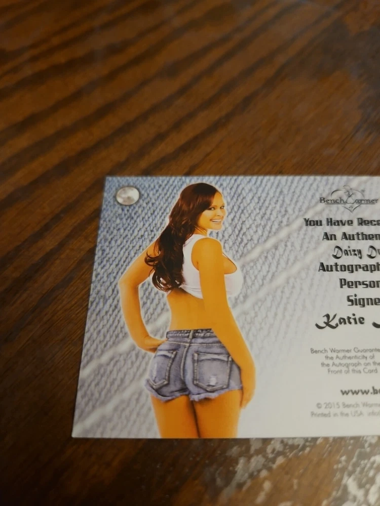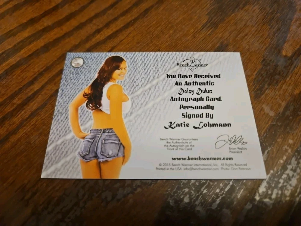 2015 Benchwarmer Daizy Dukez Autograph Gold Foil Card Katie Lohmann Auto Playboy Katie Lohmann was born in Scottsdale, Arizona, on January 29, 1980. She is the youngest of three children (sister Christine and brother Michael). Her father Dan is a successful accountant and has owned several businesses. Her mother Sharon is the head of Payroll for Citibank. Her parents divorced in 1992. Katie discovered early on that she loved performing on stage. Her first performance was singing a song from the Walt Disney classic The Little Mermaid (1989) , at the age of eight, and she received a standing ovation. In 1989 a casting call took place for the new Disney Mickey Mouse show, The All New Mickey Mouse Club (1989) . Although she had never worked on a TV show, Katie felt that this would be the perfect opportunity and was told she was exactly what they were looking for. However, her mother felt she was too young and the show would interfere with her education. Katie decided to take her mother's advice and wait until she was finished with school before pursuing her career. Ten years later (2000) she graduated from high school and relocated to Los Angeles. She captured Hollywood by storm with her platinum blonde hair and beautiful hazel eyes. Katie had already been modeling for several years prior to moving to Los Angeles, and within a short time had been on the cover of numerous magazines all over the world. It wasn't long after that she came to the attention of Playboy magazine, and they decided to make her a centerfold. By the age of 20 she landed her first acting gig on Rude Awakening (1998) , and soon found herself in such films as Tomcats (2001) _, Auto Focus (2002) and Dorm Daze (2003) , starring Tatyana Ali and Danielle Fishel . As for her current projects, she recently shot a pilot for the WB entitled "Hot Mama", with Gina Gershon , and has a role on Creating America's Next Hit Television Show (2004) , directed by Richard Kline . Please, look at all the pictures. Please check out my other eBay accounts... https://www.ebay.com/usr/kimmyrael https://www.ebay.com/usr/matlac99 https://www.ebay.com/usr/lacr6837 https://www.ebay.com/usr/malac9440 https://www.ebay.com/usr/lacr_3567 https://www.ebay.com/usr/lacroki8 https://www.ebay.com/usr/lacroki9 Shipping only to the continental US unless you contact me first. Will combine shipping!!!