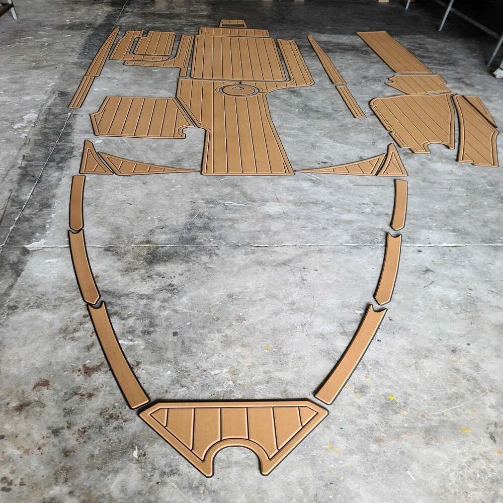 We could not add the 12 floor color options that you can choose to use to each listing because of quantity limit, when you order it, you can just leave an order note for the floor color that you want to use or you can send us a message, we will always check and confirm the floor color with you before we make the floor for you.You can just order it. 2015-2018 Malibu 22 VLX Cockpit Pad Boat EVA Foam Teak Deck Floor Please be aware that we can only make this boat floor by the first listing drawing. Before you order it, please double check the listing drawing outline shapes with your boat to make sure they can fit your boat well. As long as the floor pad outline shape can match your boat deck layout, it should fit well.We will not be hold responsible if the listing drawing floors do not fit your boat well because you do not double check our listing drawing. We can only make sure that the floors will be cut exactly by the listing drawing. If you are not sure if the drawing can fit well with your boat, please send us some photos of your boat deck layout or a short video to show your boat deck layout from stern to bow so we can help you to confirm the fitting. The floor comes with marine backing adhesive.It is peel and stick installation.You just need to peel off the white protection paper and put it down. You do not need to buy glue to install it. We offer 1 year warranty for all our boat floors. The EVA floor is 1/4"(6mm) thick two-color pad. You can choose your colors, texture and faux teak option. Additional custom text logos can also be incorporated on EVA floor. All routed logos and beveled edges will show the bottom color selected. All EVA floors come with marine backing glue. All EVA floors listed on our online store are "made to order" and not stocked so please allow up to 2-3 weeks for delivery. EVA floor fabrication time is about 4-5 days, then it will take about 7-10 days’ time to ship and deliver to your order shipping address.After you order it, please double check your order shipping address to make sure all the shipping address, postal code, city name and contact phone number are all correct. We will ship all orders by express shipping such as DHL, FedEX, USP or EMS express. We will choose the shipping courier as we see fit. Color choices: #1 Brown+Black #2 Dark Brown+Black #3 Brown+White #4 Grey+Black #5 Dark Grey+Black #6 Grey+White #7 Grey+Blue #8 Grey+Purple #9 Grey+Red #10 Black+White #11 Black+Red #12 Black+Blue When you order it, please tell us the color you want for top layer and bottom layer. Additional custom text logo fee:30 USD/ea. Before you order it, please verify the dimensions of the product drawing and confirm that it matches your boat and understand that this cannot be returned without a restocking fee of 30%. We can also make the custom EVA teak decking by the template drawing or full size template that you can supply to us. The listing price does not include any destination duties/taxes/custom fees/etc. that will be due when the product arrives at destination countries/regions. It is the customer's responsibility to pay for all custom duty/taxes/custom fees if any class="extend--iframe--to7hHIV" data-spm-anchor-id="a2g0o.detail.0.i1.1f33O8FSO8FSb0" data-spm-act-id="a2g0o.detail.0.i1.1f33O8FSO8FSb0" style="box-sizing: border-box; -webkit-tap-highlight-color: transparent; outline: 0px; margin: 0px; padding: 0px; height: 24516.7px; position: absolute; top: 0px; visibility: hidden; z-index: -1;">