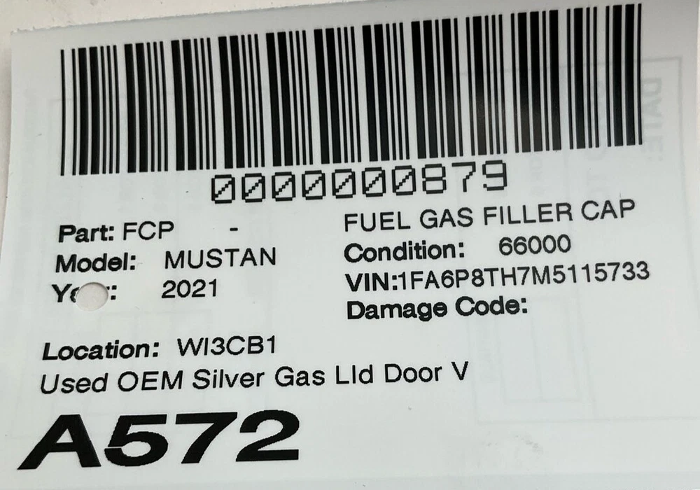 HK Auto Salvage HK Auto Salvage Montebello, CA Business Hours (PST/PDT) Mon - Fri 8am - 5pm Saturday 8am - 2pm Closed Sat & Sun Fuel Gas Filler Cap Year: 21 Model: FORD MUSTANG Side: Type: Used Category: Condition: 66000 VIN: 1FA6P8TH7M5115733 Vehicle Stock #: A572 Part Stock #: 0000000879 Vehicle Info: Additional notes: Used Oem Silver Gas Lid Door Very Nice Condition Interchange: Also fits: Search for more parts from this donor vehicle Search for more parts for FORD MUSTANG Airbag Notification If the item above is an airbag, I certify this airbag is not subject to recall and will be shipped in accordance with hazmat shipping requirements . Payment We accept credit cards through eBay Managed Payments only Sales tax collected by eBay where applicable COD available for orders placed for delivery to local businesses; please contact us prior to purchase to arrange Pay on pickup available for orders placed for local pickup Shipping We ship by FedEx, UPS, and USPS. Most items ship within 24 hours of payment; items paid for on the weekend or holidays ship on the following business day. Any free shipping we offer is for the continental United States only. If you are from Hawaii, Alaska, or a Territory of the United States, please request a shipping total before bidding and we will do our best to keep the cost low. Local delivery and local pickup options are also available. Warranty & Returns 30-day standard warranty on all general parts 90-day standard warranty on engines and transmissions Please verify fitment independently prior to purchase, as the information in the "compatibility" section above is generated by eBay Motors and not from us. If you have questions or concerns about fitment, please contact us prior to purchase. Contact Us If you have any questions regarding an eBay item, please CONTACT US via eBay messaging before you make the purchase. Please verify fitment independently prior to purchase, as the information in the "compatibility" section above is generated by eBay Motors and not from us. If you have questions or concerns about fitment, please contact us prior to purchase. After you have received your product in satisfactory condition, please leave us positive feedback. If there is a problem with your purchase, do not leave neutral or negative feedback: CONTACT US so that we can help you to resolve your issue to your satisfaction. Powered by Checkmate