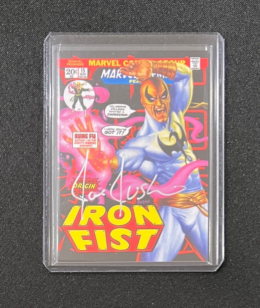2016 MARVEL MASTERPIECES # 32 IRON FIST WHAT IF SILVER AUTOGRAPH CARD. CASE HIT /10 CARD IS IN GREAT (NM/M) CONDITION OR BETTER. 09/10 CARD IS SIGNED BY ARTIST JOE JUSKO AND CERTIFIED BY THE UPPER DECK COMPANY. ALL MY ITEMS COME FROM A SMOKE-FREE HOUSE. SHIPMENT WILL BE SENT IN 2 DAYS OF PAYMENT. I WILL SHIP THIS CARD IN THE GREATEST OF CARE. BUYERS OUTSIDE OF THE CONTINENTAL U.S. MAY HAVE TO PAY EXTRA FOR SHIPPING. I DO OFFER COMBINE SHIPPING RATES. SO PLEASE CHECK OUT MY OTHER ITEMS . FEEL FREE TO MESSAGE ME WITH ANY QUESTIONS. THANKS FOR LOOKING AND GOOD LUCK.