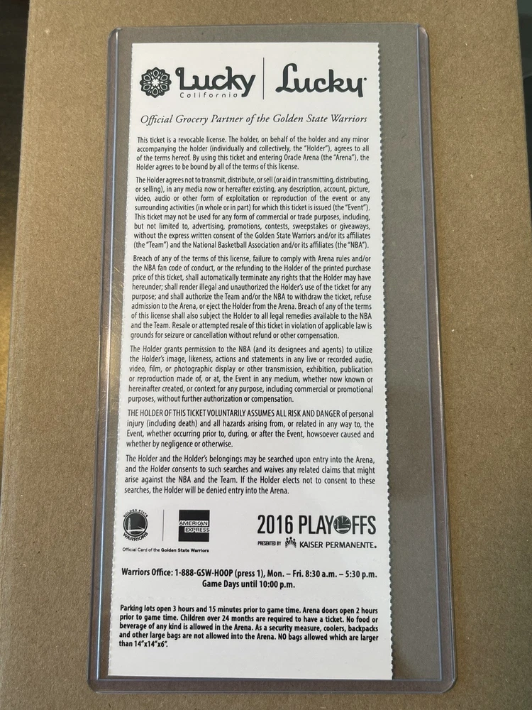 Own a piece of history with this original ticket stub from the 2016 NBA Finals Game 7 featuring the Cleveland Cavaliers and Golden State Warriors. This vintage collectible captures the excitement of "The Block" and LeBron James earning the title of MVP. The stub is in excellent grade and showcases the Cavaliers team and player, making it a must-have for any basketball fan. Add this to your sports memorabilia collection today!