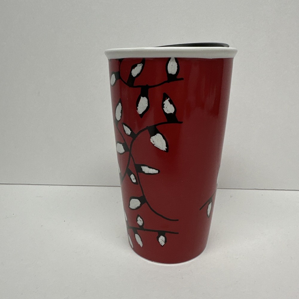 This beautiful Starbucks coffee mug is the perfect addition to any collection! Featuring a festive design with red accents and string lights, this 12 fl oz ceramic mug is perfect for enjoying your favorite hot beverage on the go during the holiday season. Made in 2016, this original piece is sure to impress any coffee or tea lover. The mug is branded with the Starbucks logo and is perfect for advertising or display purposes. Don't miss out on this unique and collectible piece!