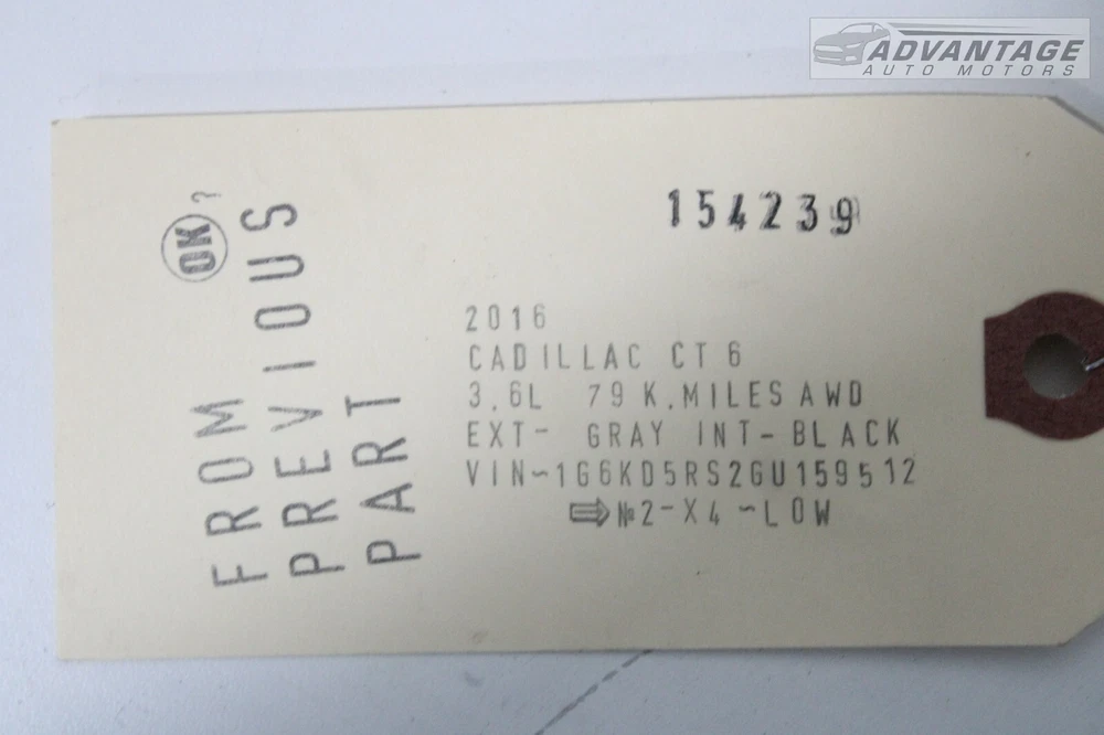 ADVANTAGE AUTO MOTORS DONOR VEHICLE: 2016 CADILLAC CT6 ENGINE: 3.6L V6 DOHC GAS TRANSMISSION: 8 SPEED AUTOMATIC TRANSMISSION (8L45) DRIVE TYPE: ALL WHEEL DRIVE (AWD) BODY TYPE: 4-DOOR SEDAN MILEAGE: 79K MILEAGE COLOR: EXTERIOR COLOR: GRAY INTERIOR COLOR/TRIM : BLACK / LEATHER VIN NUMBER: 1G6KD5RS2GU159512 ATTENTION! PLEASE READ THE DESCRIPTION OF THE PRODUCT AND PLEASE READ OUR RULES BEFORE BUYING. MAKE SURE THE SPARE PARTS YOU WANT TO PURCHASE IS FIT FOR YOUR CAR. IF YOU ARE NOT SURE WHETHER THIS PART FITS YOUR CAR, CONTACT US OR CHECK THE INFORMATION WITH THE DEALER USING VIN NUMBER. YOU WILL RECEIVE EVERYTHING IS SPECIFIED IN THE DESCRIPTION AND IN THE PHOTOS. ALL SPARE PARTS ALREADY REMOVED FROM THE CAR AND ARE IN THE WAREHOUSE ON THE SHELVES. IF YOU BUY AN ITEM, IT WILL BE IMMEDIATELY PACKED AND SHIPPED. IF YOU NEED AN INVOICE FOR AN INSPECTION OR OTHER CHECK, YOU CAN CONTACT US ABOUT IT AND WE WILL SEND AN INVOICE TO YOUR E-MAIL. IF YOU HAVE ANY PROBLEMS: THE PRODUCT WILL NOT BE DELIVERED ON TIME OR WILL COME DAMAGED OR YOUR ORDER WILL BE LOST, DO NOT HURRY TO LEAVE NEGATIVE FEEDBACKS, PLEASE CONTACT US AND WE WILL SOLVE YOUR PROBLEM ASAP. IN THE LAST PHOTO ON THE TAG, WE INDICATE THE NUMBER OF SPARE PARTS FOR OUR EMPLOYEES, THAT IS IF IT SAYS QUANTITY: 4 ON THE TAG, IT MEANS WE HAVE 4 SUCH SPARE PARTS. TO GET 2 OR MORE PARTS, YOU MUST SELECT THE QUANTITY YOU WANT AT CHECKOUT. SHIPPING: FREE SHIPPING ONLY EXTENDED TO SMALL SPARE PARTS. DELIVERY FOR PARTS LIKE: ENGINE, TRANSMISSION, DOOR, HOOD, BUMPER, AND OTHER LARGE PARTS WILL BE SPECIFIED IN THE DESCRIPTION . INTERNATIONAL SHIPPING: DELIVERY COST TO ALASKA, HAWAI, PUERTO RICO AND GUAM $ 50 (SMALL SPARE PARTS). IF YOU WANT TO PURCHASE LARGE SPARE PARTS, PLEASE CONTACT US BEFORE YOU PURCHASE FOR SHIPPING COST. DELIVERY ABROAD IS ALSO POSSIBLE. CONTACT US TO FIND OUT THE PRICE AND TIME OF DELIVERY. EXPEDITE SHIPPING: IF YOU URGENTLY NEED SPARE PARTS, WE CAN SEND US USING OVERNIGHT OR 2 DAYS DELIVERY. CONTACT US AND WE WILL PROVIDE YOU WITH EXACT SHIPPING COST. RETURNS: WE HAVE A 30 DAY RETURN POLICY. BUYER PAYS RETURN SHIPPING IF REASON FOR RETURN: 1- ORDERED BY MISTAKE; 2- CHANGE MY MIND; 3- FIND THE BEST PRICE; 4- SPARE PARTS NOT FIT; 5- JUST DO NOT LIKE IT. IF THE BUYER HAS RETURNED THE PRODUCT AND THE PART NUMBERS DO NOT MATCH THE NUMBERS ON THE PHOTOS OR HAS RETURNED THE SPARE PARTS WITH DAMAGES OR THE BUYER OPENED THE PART, THEN ACCORDING eBay RULES, THE SELLER HAS THE RIGHT TO CHARGE 50% OF THE PRICE OF THE PRODUCT WARRANTY: WE HAVE 30 DAYS WARRANTY ON ENGINES, TRANSMISSIONS, TRANSFER CASES AND DIFFERENTIALS. NO LABOR COST REIMBURSEMENT. THANKS FOR YOUR INTEREST AND LOOKING FOR OUR DETAILS. AAM PARTS!!