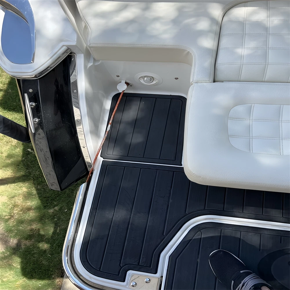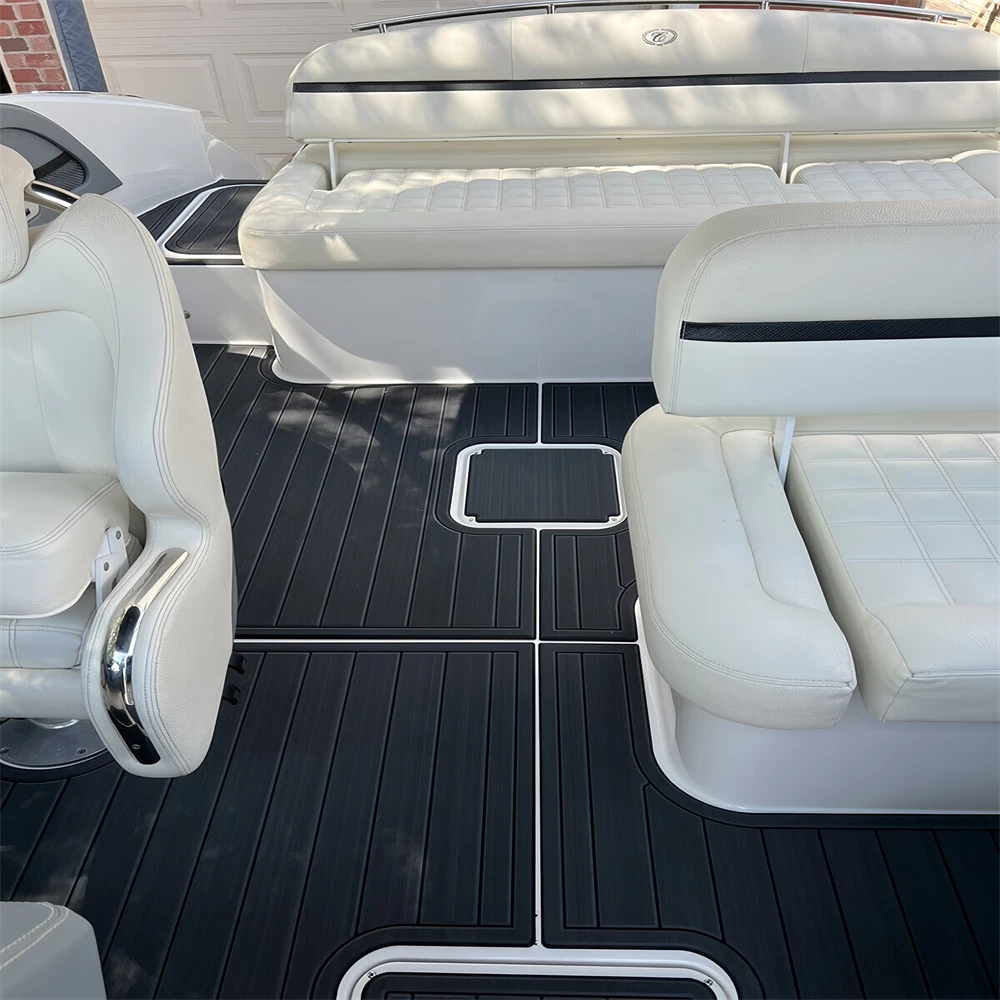 We could not add the 16 floor color options that you can choose to use to each listing because of quantity limit, when you order it, you can just leave an order note for the floor color that you want to use or you can send us a message, we will always check and confirm the floor color with you before we make the floor for you.You can just order it. Please be aware that we can only make this boat floor by the first listing drawing. Before you order it, please double check the listing drawing outline shapes with your boat to make sure they can fit your boat well. As long as the floor pad outline shape can match your boat deck layout, it should fit well.We will not be hold responsible if the listing drawing floors do not fit your boat well because you do not double check our listing drawing. We can only make sure that the floors will be cut exactly by the listing drawing. If you are not sure if the drawing can fit well with your boat, please send us some photos of your boat deck layout or a short video to show your boat deck layout from stern to bow so we can help you to confirm the fitting. The floor comes with marine backing adhesive.It is peel and stick installation.You just need to peel off the white protection paper and put it down. You do not need to buy glue to install it. We offer 1 year warranty for all our boat floors. The EVA floor is 1/4″(6mm) thick two-color pad. You can choose your colors, texture and faux teak option. Additional custom text logos can also be incorporated on EVA floor. All routed logos and beveled edges will show the bottom color selected. All EVA floors come with marine backing glue. All EVA floors listed on our online store are “made to order” and not stocked so please allow up to 2-3 weeks for delivery. EVA floor fabrication time is about 4-5 days, then it will take about 7-10 days’ time to ship and deliver to your order shipping address.After you order it, please double check your order shipping address to make sure all the shipping address, postal code, city name and contact phone number are all correct. We will ship all orders by express shipping such as DHL, FedEX, USP or EMS express. We will choose the shipping courier as we see fit. Color choices: #1 Black over Brown #2 Black over Dark Grey #3 Black over Green #4 Black over Red #5 Black over White #6 Brown over Black #7 Brown over White #8 Coffee over Black #9 Dark Grey over Black #10 Dark Grey over Grey #11 Grey over Black #12 Grey over blue #13 Grey over Purple #14 Grey over Red #15 Grey over White #16 Black over Blue When you order it, please tell us the color you want for top layer and bottom layer. Additional custom text logo fee:50 USD/ea. Before you order it, please verify floor drawing and confirm that it matches your boat and understand that this cannot be returned without a restocking fee of 30%. We can also make the custom EVA teak decking by the template drawing or full size template that you can supply to us. The listing price does not include any destination duties/taxes/custom fees/etc. that will be due when the product arrives at destination countries/regions. It is the customer’s responsibility to pay for all custom duty/taxes/custom fees if any. 1.EVA material is a high-density sponge, does not absorb moisture 2.No blackening/darkening in humid environment 3.Hardness: Around 55-50 degrees 4.Soft & Comfortable 5.Easy maintenance(Use of common cleaning agents, rinse with brush and water 6.High and low temperature resistance 7.Sound insulation and anti-vibration 8.Easy replacement,Easy installation,No additional auxiliary materials required 9.UV resistant without color fading 10.Support for customized services(Colors and patterns) Precautions before payment: 1.Please check if the boat model match your Yacht model。 2.Some ship models have different configurations with different options, please pay attention to choose the most suitable one 3.If not sure whether your ship matches the drawings, please send us photos of swim platform and cockpit, we could help to determine if it is appropriate 4..If need to verify the size, please feel free to contact us Order colors: 1.If request color not included in color cards, need to waiting the other 10-15 days. Parcels can be sent out within 20 days(Start from the moment of payment done), extend the cycle when it comes to holidays 2.The picture colors for reference only, based on actual color(Photos taken by cell phones easy to present the chromatic aberration) For design: 1.We could design drawings according to the customer’s requirements(Free of Charge) 2.We could provide design drawings for your choices 3.Support LOGO customization(50USD/ea), document is needed, format file: DXF/AI/PDF/JPJ/PNG etc. For Installation: 1.Need to use acetone or alcohol to clean the floor before installation(To remove surface wax of new ships), make sure it is dry before starting the installation. 2.Lay all EVA floors flat before installation. When confirming the location, tear off the backing adhesive from one corner and start the installation 3.Fix it when pasting, cannot move EVA floors 4.Rolling with round rollers during installation process(Need to finger press LOGO position in advance to avoid air in it). If air generated, remove it by use of a small needle to pierce the air bubble 5.No soaking within 48 hours after installation Making Templates: If no matching ship model in our sale list, pls provide template we could produce it based on your template’s requirement Reference image to create template Make a note in the package to remark contact details, name, the brand of small ship/model/year of production, we will contact you immediately We will send design drawings to you for confirmation within 5 days after template received Complete production and send package within 3-5 days after confirmation of drawings(after payment done) Package: Soft material. Rolled and packed for shipment. Outer box package Shipment Express courier: DHL FEDEX TNT UPS 