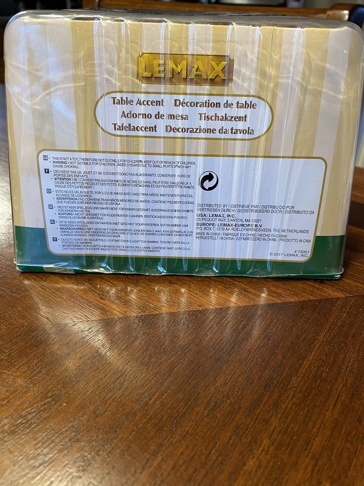 The 2017 LEMAX Table Accent SHARING PARTAGE #73301 is a medium-sized ceramic and porcelain Christmas village decoration with an asymmetrical shape. This multicolor piece features a village theme and is designed to be a festive addition to any room during the Christmas season. It comes in its original box and is part of the seasonal collection by LEMAX. The item measures 4 1/2 inches in length, 4 inches in height, and 2 1/2 inches in width, making it a charming and detailed collectible for holiday displays. New in package. Ships only to the lower 48 u.s. states. Must be paid for within 3 days of purchase. Thanks for looking