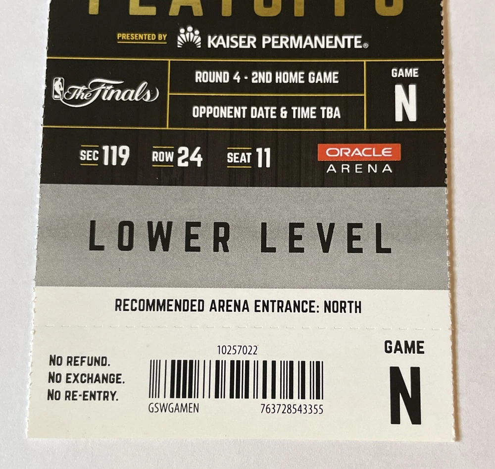 June 4, 2017 Golden State Warriors 132 - Cleveland Cavaliers 113 KD 33pts 13reb 6ast Lebron 29pts 11reb 14ast Steph Curry 32pts 10reb 11ast LeBron & Steph BOTH triple doubles Lebron averaged a Triple Double in this series Durant was MVP Stub is NM+ to MINT exact one pictured Large stub 3in X 7.25in
