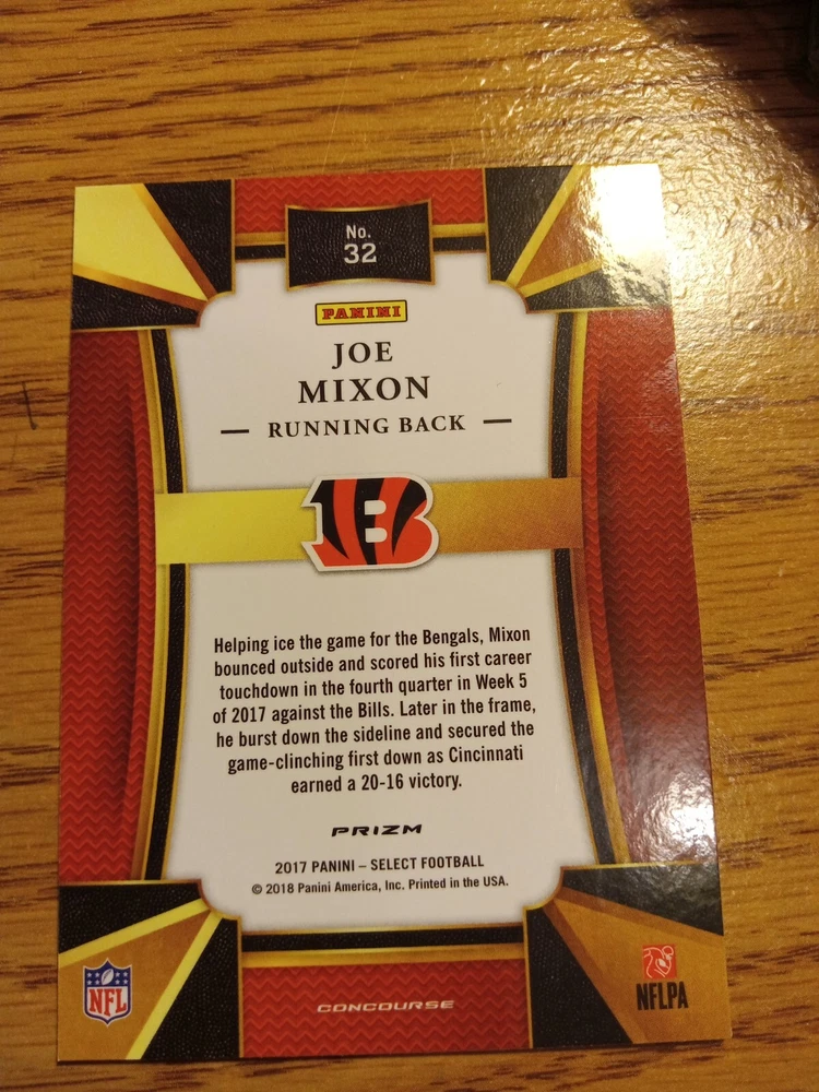 Season: 2017 Features: Insert, Parallel/Variety, Rookie Type: Sports Trading Card Sport: Football Parallel/Variety: Silver Prizm Player/Athlete: Joe Mixon Manufacturer: Select League: National Football League (NFL) Card Number: 32 Set: 2017 Select