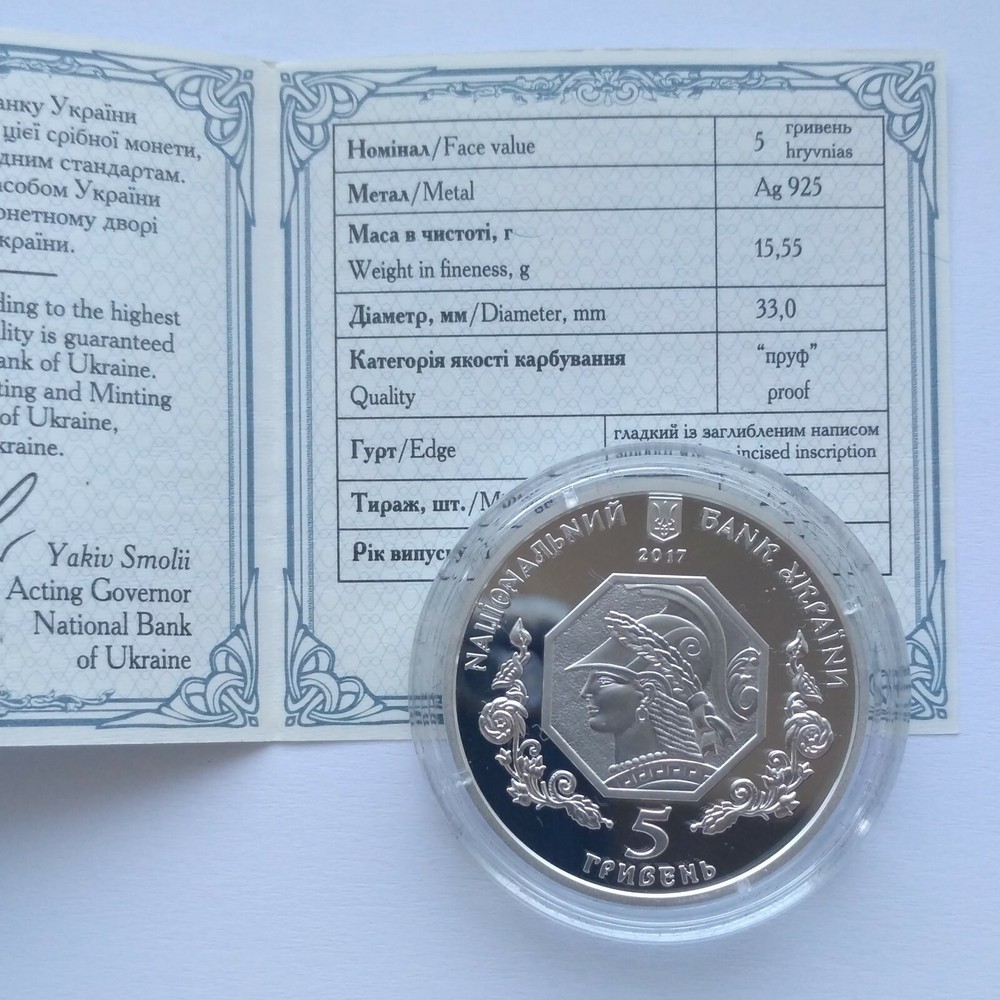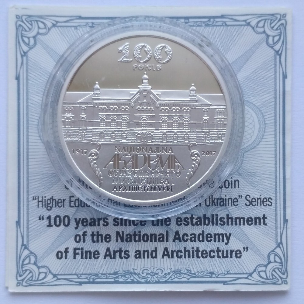 100 YAERS of NATIONAL ACADEMY of FINE ARTS & ARCHITECTURE Item description Ukraine 1/2 Oz Silver Proof Coin 5 Hryvnia 2017 Series: Higher educational establishments of Ukraine Quality Proof Face Value 5 Hryvnia Material Silver 925 Mintage 2500 Year 2017 Size 33,00 mm. Weight 15,55 gram (1/2 Oz) In capsule, in bank box with COA. Dedicated 100 years since the establishment of the National Academy of Fine Arts and Architecture, which succeeded the Ukrainian Academy of Arts. The national academy was founded on 18 December 1917 at the initiative of prominent public figures, patrons of the arts, and artists, at a time of great hopes and hardship in Ukraine. The main objective of founding the first Ukrainian higher institution of fine arts was to cultivate an artistic school on the basi s of national and world culture. Thanks for watching! Feel free to e-mail me with any questions! Shipping Information We ship worldwide. Combine shipping: All bidders pay shipping cost 8.49 $ for first item and have a discount $7.99 on shipping cost for each additional item . All orders are processed and shipped within 1 business day of receipt of payment. The item(s) will be shipped by registered airmail by Ukrainian Postal Service. Shipping takes 15-18 business days to USA, Canada, Australia and Japan. Shipping to Europe takes 10-15 business days. Shipping cost: - Worldwide: US $ 8.49 I guarantee you complete satisfaction with all my high quality products. If you receive an item you did not order or if an item you ordered is received damaged or defective, I will refund you the price you paid for it or replace it with identical one.