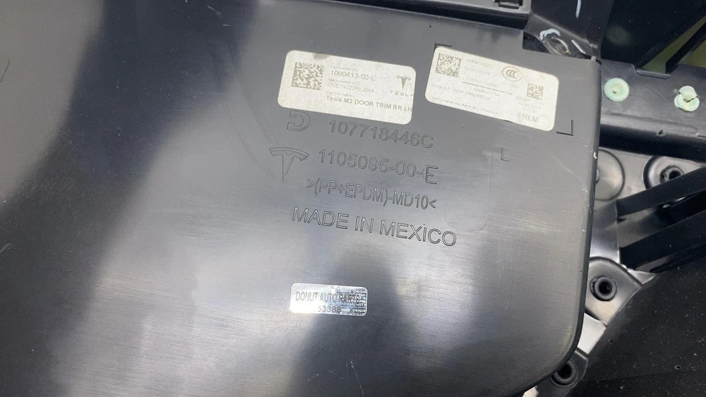 Donut Auto Dismantling Donut Auto Dismantling Rancho Cordova, CA Business Hours (PST/PDT) Mon - Fri 8am - 5pm Closed Sat & Sun Rear Door Trim Panel Year: 19 Model: TESLA MODEL 3 Side: Left Type: Used Category: ND Condition: 0cc Vehicle Stock #: 25096 Part Stock #: 0000077184 Additional notes: 2017-2020 Tesla Model 3 Rear Driver Side Interior Door Panel Trim Card Left LH Interchange: Also fits: Search for more parts from this donor vehicle Search for more parts for TESLA MODEL 3 Dear Valued Customers Before ordering, please verify the part number and compare the physical details of your part with the photos in our listing. Tesla sometimes changes parts within the same model year, so even if the year matches, variations may exist. Examine all photos and read the description. Please contact us and ask any questions you have about the item. What you see in the pictures is what you will receive. Item are sold as Pictured in our ads, All the damages are marked in pictures with colored markings ........ indicated scratches, O indicate dents/dings view all photos and description. All Parts come with a 60-Day warranty Compatibility We are not responsible for compatibility, please order parts with the same part number to avoid delays and fitment issues in your purchase. Always verify O.E.M part numbers check fitment. Shipping & Return Policy For LTL and freight shipments: Please inspect an item before signing. For LTL and freight shipments of large items like Battery Packs, Seats, Doors, Trunks, Hoods, and other sizable body parts, a commercial address is mandatory . This must be a business equipped with a dock or forklift. Please note that deliveries cannot be made to restaurants, office buildings, or hotels. Please allow 5-11 business days from the shipping date to receive freight items. If a forklift is not available to unload your package, please ensure that you added liftgate service fee to your order. Residential deliveries have an extra charge required by LTL to cover liftgate usage and city ordinance. Be advised not all LTL freight companies offer lift gate services in every town especially in rural areas. If you do not have a commercial address or a proper residential address reach out to us to work things out LTL items can always be held at your local hub and made available for pickup. We offer free local pickup Monday through Friday, from 8:00 AM to 5:00 PM. What separates us from our competitors As Pioneers in the Tesla used parts market Donut Auto Parts is leading in the industry. We have been specializing in Tesla's for over 5 years. Our Staff are highly trained and experienced Tesla specialists. We strive to help you solve all your part needs. Local Customers For our local customers we provide installation on battery packs and drive units purchase. Drive unit and battery pack installations come with a 60 day warranty . All parts are fully tested. Using the industries leading tools, we also provide installation of other parts. Please reach out to us directly for more information. Be Advised Programming may be required for most electronic components. Donut Auto Parts is not responsible for any labor costs and other charges such as programming. NO RESTOCKING FEE Payment Payment must be submitted within 48 hours after purchase time. We have a Same handling time when paid by 2pm pst and 3-day handling time for LTL freight items. Feedback and Rating We always Strive to earn positive feedback. If you encounter an issue with one of our items, please contact us before leaving any feedback or opening a case give us the opportunity to solve your order issue. We strive to provide excellent customer service to ensure that everyone is satisfied, and to gain happy and returning customers! ALLOW US TO RESOLVE ISSUES BEFORE LEAVING YOUR FEEDBACK PLEASE CONTACT US FIRST Airbag Notification If the item above is an airbag, I certify this airbag is not subject to recall and will be shipped in accordance with hazmat shipping requirements . Powered by Checkmate
