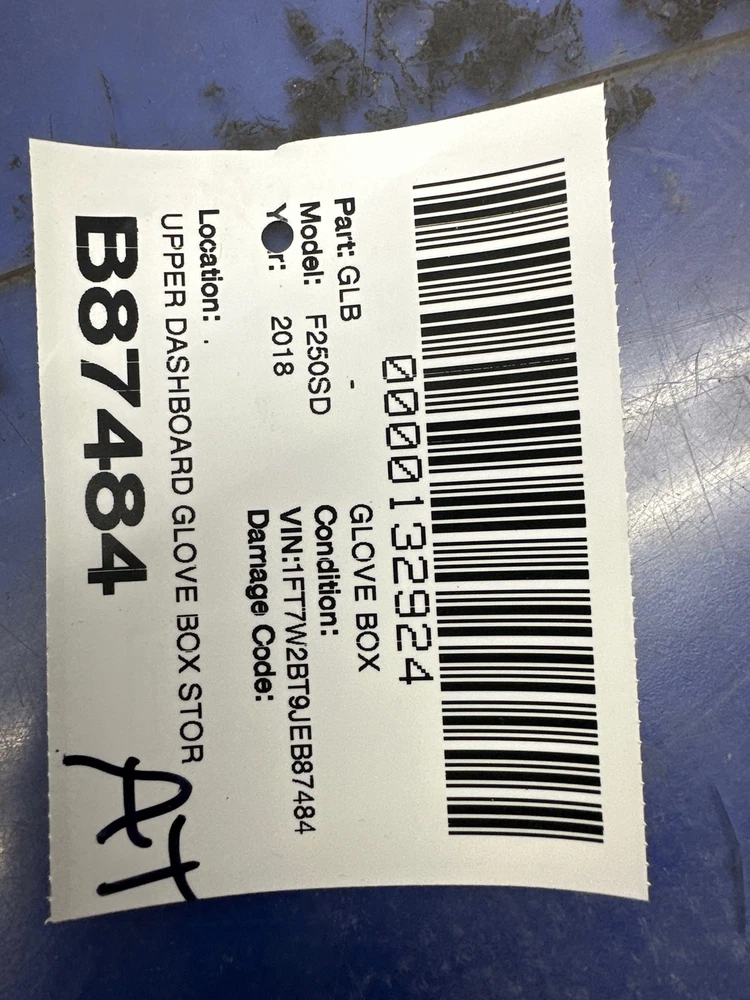 Parts Box Parts Box Belton, SC Business Hours (EST/EDT) Mon - Fri 8am - 5pm Closed Sat & Sun Item Description GLOVE BOX Part Description: UPPER DASHBOARD GLOVE BOX STORAGE DOOR W/ SUPERDUTY MOLDING *SCRATCHES* HC3B25060C20 2018 *WE SHIP* The listed item is in good, used, working condition and comes as pictured. Interchange: This part will fit: Donor Vehicle & Part Information Vehicle Description: WHITE GOLD,GN,4DR,02/18,LARIAT,CAMEL,6A,HAS KEY,6.7L,AUTO TRANS,4X4 Year: 18 Model: FORD F250 SD PICKUP Side: Type: U Category: W Condition: Grade: C VIN: 1FT7W2BT9JEB87484 Vehicle Stock #: B87484 Vehicle Mileage: Part Stock #: 0000132924 Part Mileage: 158870 Search for more parts from this donor vehicle Search for more parts for FORD F250 SD PICKUP Airbag Notification If the item above is an airbag, I certify this airbag is not subject to recall and will be shipped in accordance with hazmat shipping requirements . Shipping We ship by FedEx, UPS, USPS, and regional freight/LTL carriers. Items shipped by freight MUST be shipped to a business with a dock or forklift access; otherwise, liftgate and/or residential delivery fees may apply. Most items ship within 24 hours of payment; items paid for on the weekend or holidays ship on the following business day. Any free shipping we offer is for the continental United States only. If you are from Hawaii, Alaska, or a Territory of the United States, please request a shipping total before bidding and we will do our best to keep the cost low. For orders placed outside of the United States, we ship ONLY through the eBay Global Shipping Program. If you are outside of the US, use the eBay international shipping tool above to receive a price for shipping costs. The following states MAY have a surcharge on FREIGHT ITEMS depending on size or shipping distance: CA, OR, WA, NV, ID, MT, WY, CO, AZ, UT, NM. Please email for an exact quote BEFORE purchasing if you are unsure about freight cost. Local delivery and local pickup options are also available. Returns 30-day return period on all parts 10% Restocking fee when items are returned due to buyers error. Please confirm compatibility before purchasing Please verify fitment independently prior to purchase, as the information in the "compatibility" section above is generated by eBay Motors and not from us. If you have questions or concerns about fitment, please contact us prior to purchase. Payment We accept PayPal, Visa, MasterCard, Discover, American Express, and payments transacted through eBay Managed Payments Sales tax collected by eBay where applicable Pay on pickup available for orders placed for local pickup Additional Information Parts are in good working condition unless stated otherwise as parts/components only. Paint code matches are not guaranteed LH means left or driver side RH means right or passenger side This listing may use ARA damage codes, including the following: Body Part Grading A = 1 or less units of damage B = 2 or less units of damage but more than 1 C = more than 2 units of damage Mechanical Part Grading A = Less than or equal to 60k miles, or greater than 60k miles but less than or equal to 200k miles and less than or equal to 15k miles per year B = Greater than 60k miles and less than or equal to 200k miles but greater than 15k miles per year C = Greater than 200k miles Damage Unit Types cc = Credit Card size units Blank = Unknown damage unit Part Grade Abbreviations AFT = New Aftermarket body part Downgrade = Recycler choose to downgrade the part based on damage not reflected in the grading algorithm Contact Us If you have any questions regarding an eBay item, please CONTACT US via eBay messaging before you make the purchase. Please verify fitment independently prior to purchase, as the information in the "compatibility" section above is generated by eBay Motors and not from us. If you have questions or concerns about fitment, please contact us prior to purchase. After you have received your product in satisfactory condition, please leave us positive feedback. If there is a problem with your purchase, do not leave neutral or negative feedback: CONTACT US so that we can help you to resolve your issue to your satisfaction. Powered by Checkmate