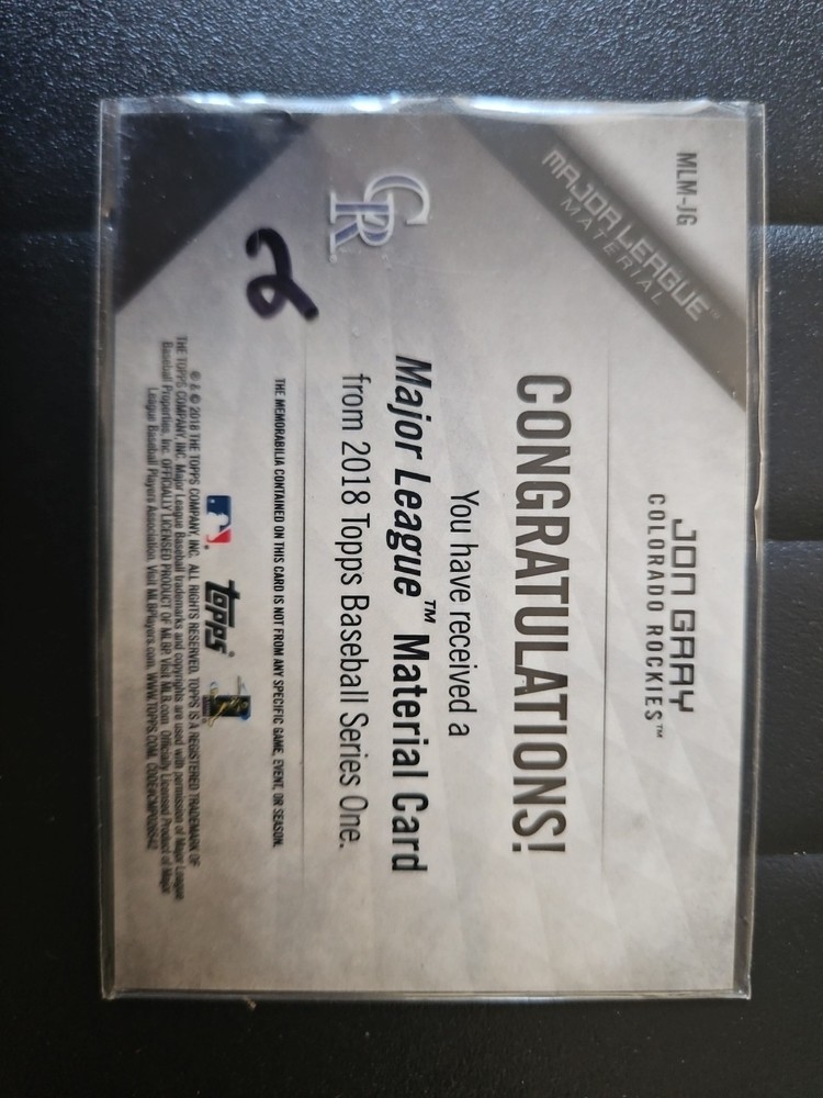 2018 Topps Major League Material Series 1 Jon Gray #MLM-JG. Condition is Ungraded. Shipped with USPS First Class Mail Letter.