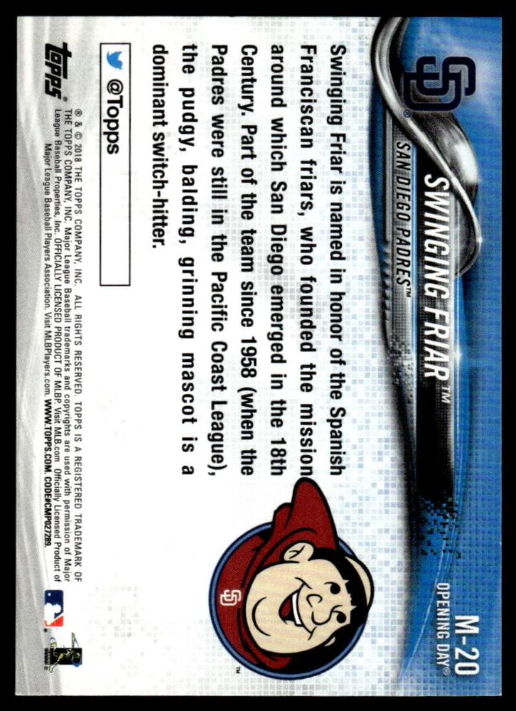 2018 Topps Opening Day Swinging Friar Mascots #M-20