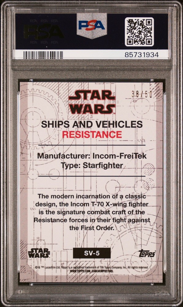 2018 Topps Star Wars Resistance X-Wing PSA 10 #SV-5 38/50 Ships Vehicles