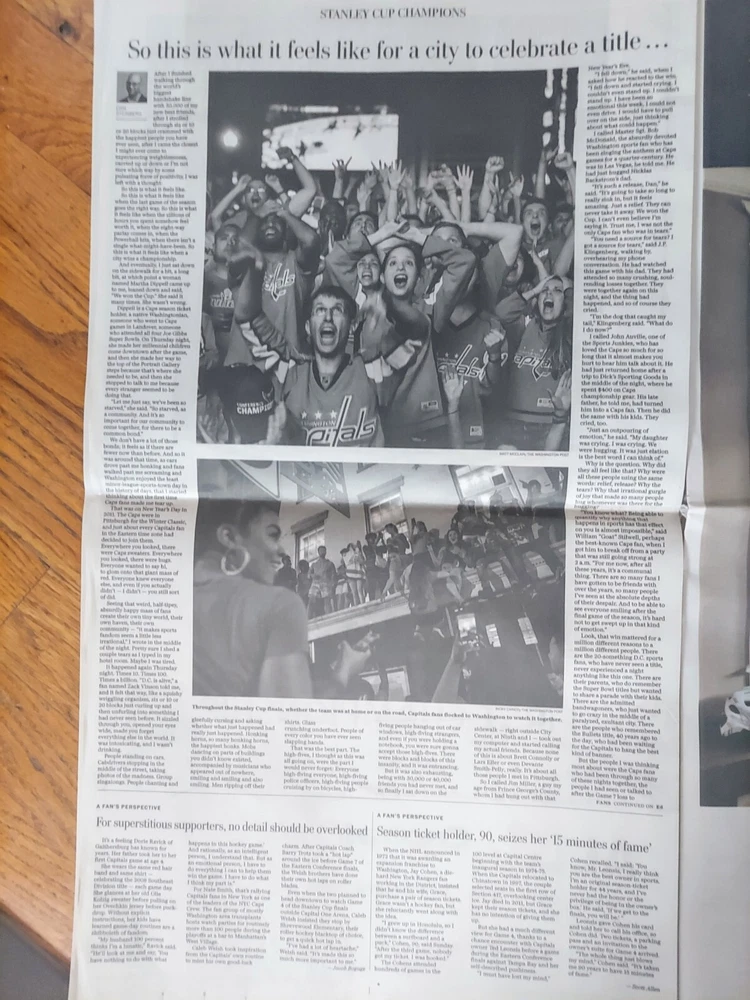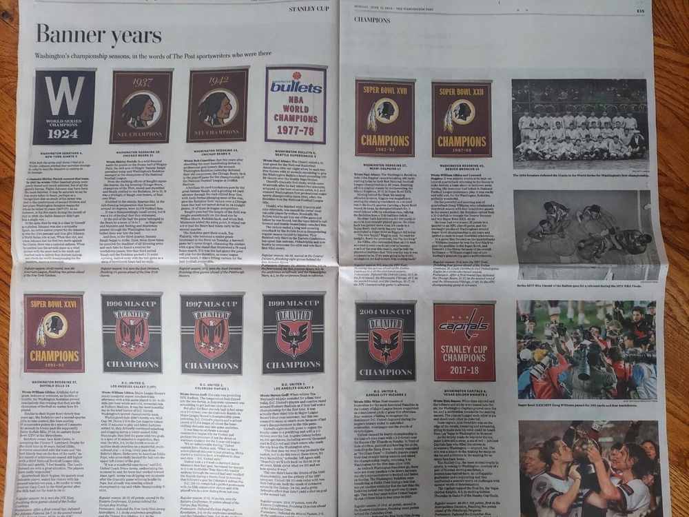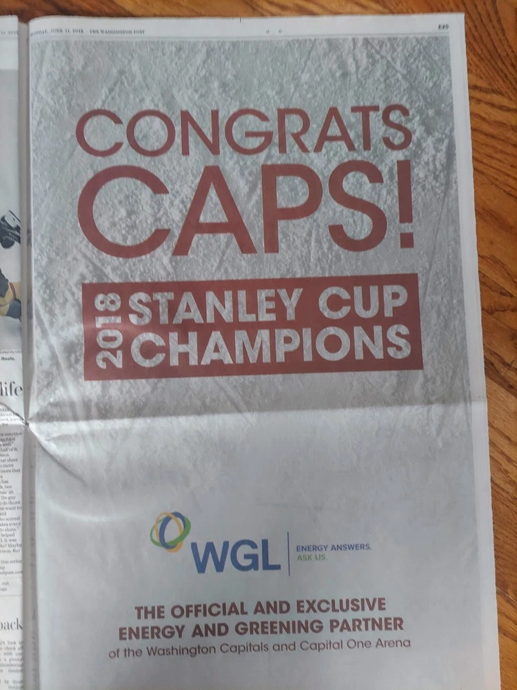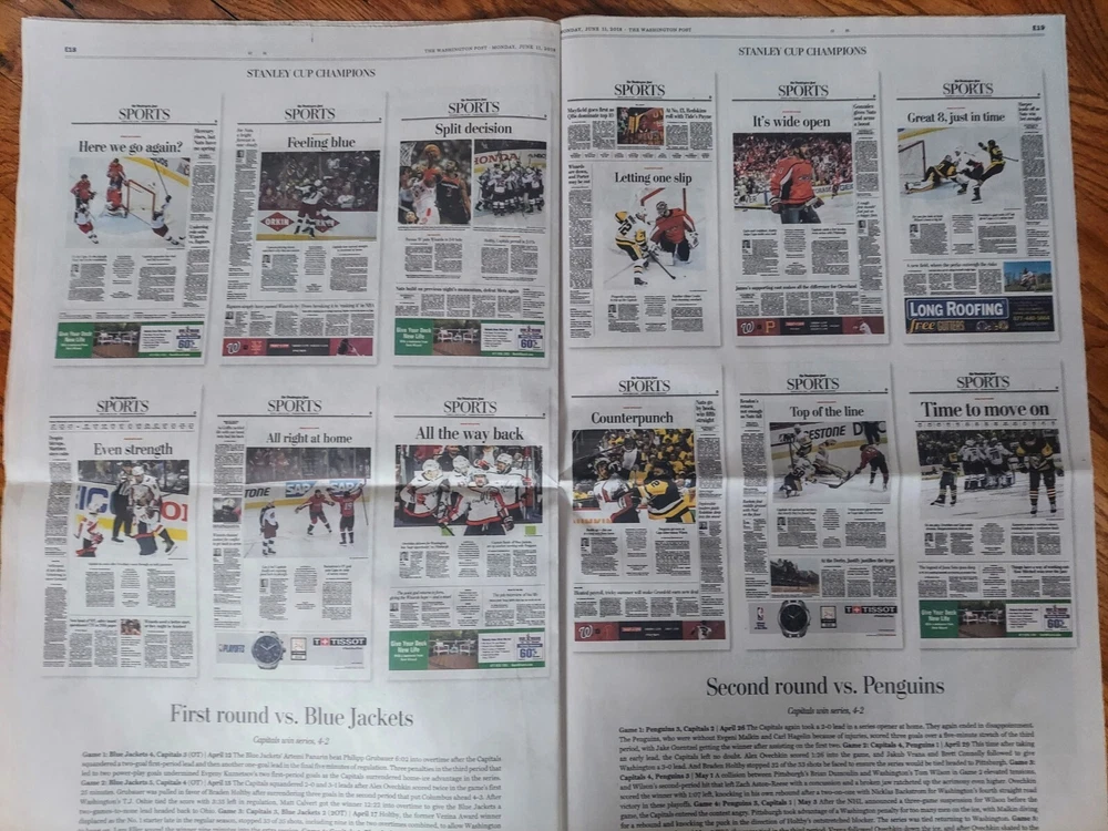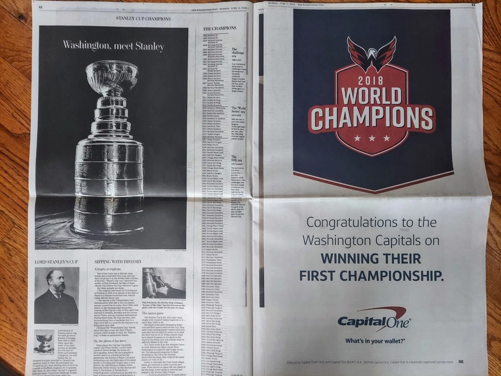 2018 Washington Capitals Stanley Cup Champions Washington Post SPECIAL SECTION π₯