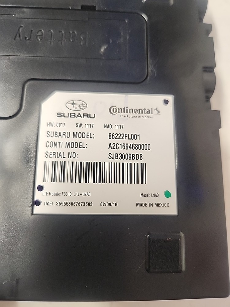 Subaru Crosstrek 2018-2019 telematics module 86222FL001 OEM 225 “This is a used module. may require dealer reprograming. Comes with a 30 day warranty.. See Pictures Please match up part numbers before purchasing