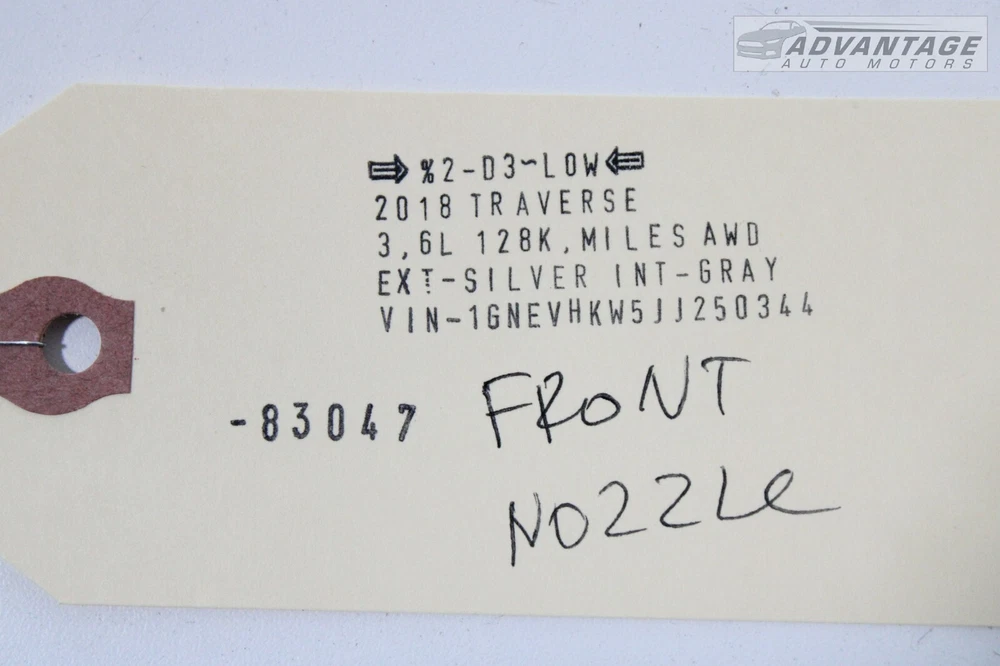 ADVANTAGE AUTO MOTORS DONOR VEHICLE: 2018 CHEVROLET TRAVERSE ENGINE: 3.6L LFY V6 DOHC GASOLINE TRANSMISSION: 9 SPEED AUTOMATIC TRANSMISSION (9T65) DRIVE TYPE: ALL WHEEL DRIVE (AWD) BODY TYPE: LT SPORT UTILITY 4 DOOR MILEAGE: 128K MILES COLOR: EXTERIOR COLOR: SWITCHBLADE SILVER PEARL (636R) INTERIOR COLOR/TRIM: MEDIUM ASH GRAY / LEATHER VIN NUMBER: 1GNEVHKW5JJ250344 ATTENTION! PLEASE READ THE DESCRIPTION OF THE PRODUCT AND PLEASE READ OUR RULES BEFORE BUYING. MAKE SURE THE SPARE PARTS YOU WANT TO PURCHASE IS FIT FOR YOUR CAR. IF YOU ARE NOT SURE WHETHER THIS PART FITS YOUR CAR, CONTACT US OR CHECK THE INFORMATION WITH THE DEALER USING VIN NUMBER. YOU WILL RECEIVE EVERYTHING IS SPECIFIED IN THE DESCRIPTION AND IN THE PHOTOS. ALL SPARE PARTS ALREADY REMOVED FROM THE CAR AND ARE IN THE WAREHOUSE ON THE SHELVES. IF YOU BUY AN ITEM, IT WILL BE IMMEDIATELY PACKED AND SHIPPED. IF YOU NEED AN INVOICE FOR AN INSPECTION OR OTHER CHECK, YOU CAN CONTACT US ABOUT IT AND WE WILL SEND AN INVOICE TO YOUR E-MAIL. IF YOU HAVE ANY PROBLEMS: THE PRODUCT WILL NOT BE DELIVERED ON TIME OR WILL COME DAMAGED OR YOUR ORDER WILL BE LOST, DO NOT HURRY TO LEAVE NEGATIVE FEEDBACKS, PLEASE CONTACT US AND WE WILL SOLVE YOUR PROBLEM ASAP. IN THE LAST PHOTO ON THE TAG, WE INDICATE THE NUMBER OF SPARE PARTS FOR OUR EMPLOYEES, THAT IS IF IT SAYS QUANTITY: 4 ON THE TAG, IT MEANS WE HAVE 4 SUCH SPARE PARTS. TO GET 2 OR MORE PARTS, YOU MUST SELECT THE QUANTITY YOU WANT AT CHECKOUT. SHIPPING: FREE SHIPPING ONLY EXTENDED TO SMALL SPARE PARTS. DELIVERY FOR PARTS LIKE: ENGINE, TRANSMISSION, DOOR, HOOD, BUMPER, AND OTHER LARGE PARTS WILL BE SPECIFIED IN THE DESCRIPTION . INTERNATIONAL SHIPPING: DELIVERY COST TO ALASKA, HAWAI, PUERTO RICO AND GUAM $ 50 (SMALL SPARE PARTS). IF YOU WANT TO PURCHASE LARGE SPARE PARTS, PLEASE CONTACT US BEFORE YOU PURCHASE FOR SHIPPING COST. DELIVERY ABROAD IS ALSO POSSIBLE. CONTACT US TO FIND OUT THE PRICE AND TIME OF DELIVERY. EXPEDITE SHIPPING: IF YOU URGENTLY NEED SPARE PARTS, WE CAN SEND US USING OVERNIGHT OR 2 DAYS DELIVERY. CONTACT US AND WE WILL PROVIDE YOU WITH EXACT SHIPPING COST. RETURNS: WE HAVE A 30 DAY RETURN POLICY. BUYER PAYS RETURN SHIPPING IF REASON FOR RETURN: 1- ORDERED BY MISTAKE; 2- CHANGE MY MIND; 3- FIND THE BEST PRICE; 4- SPARE PARTS NOT FIT; 5- JUST DO NOT LIKE IT. IF THE BUYER HAS RETURNED THE PRODUCT AND THE PART NUMBERS DO NOT MATCH THE NUMBERS ON THE PHOTOS OR HAS RETURNED THE SPARE PARTS WITH DAMAGES OR THE BUYER OPENED THE PART, THEN ACCORDING eBay RULES, THE SELLER HAS THE RIGHT TO CHARGE 50% OF THE PRICE OF THE PRODUCT WARRANTY: WE HAVE 30 DAYS WARRANTY ON ENGINES, TRANSMISSIONS, TRANSFER CASES AND DIFFERENTIALS. NO LABOR COST REIMBURSEMENT. THANKS FOR YOUR INTEREST AND LOOKING FOR OUR DETAILS. AAM PARTS!!