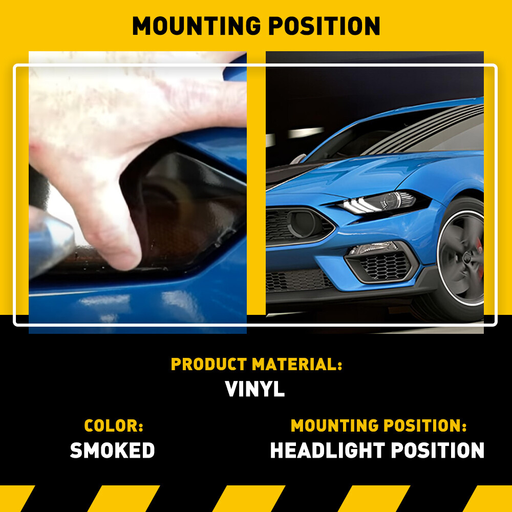 Just installed these smoked headlight tints on my 2020 Mustang and they look incredible! The vinyl is high-quality, fits perfectly, and was super easy to apply. No fading or peeling even after a few weeks of sun and rain. Gives my ride a sleek, aggressive look without blocking light output. Definitely recommend for Mustang owners wanting to upgrade their headlights!